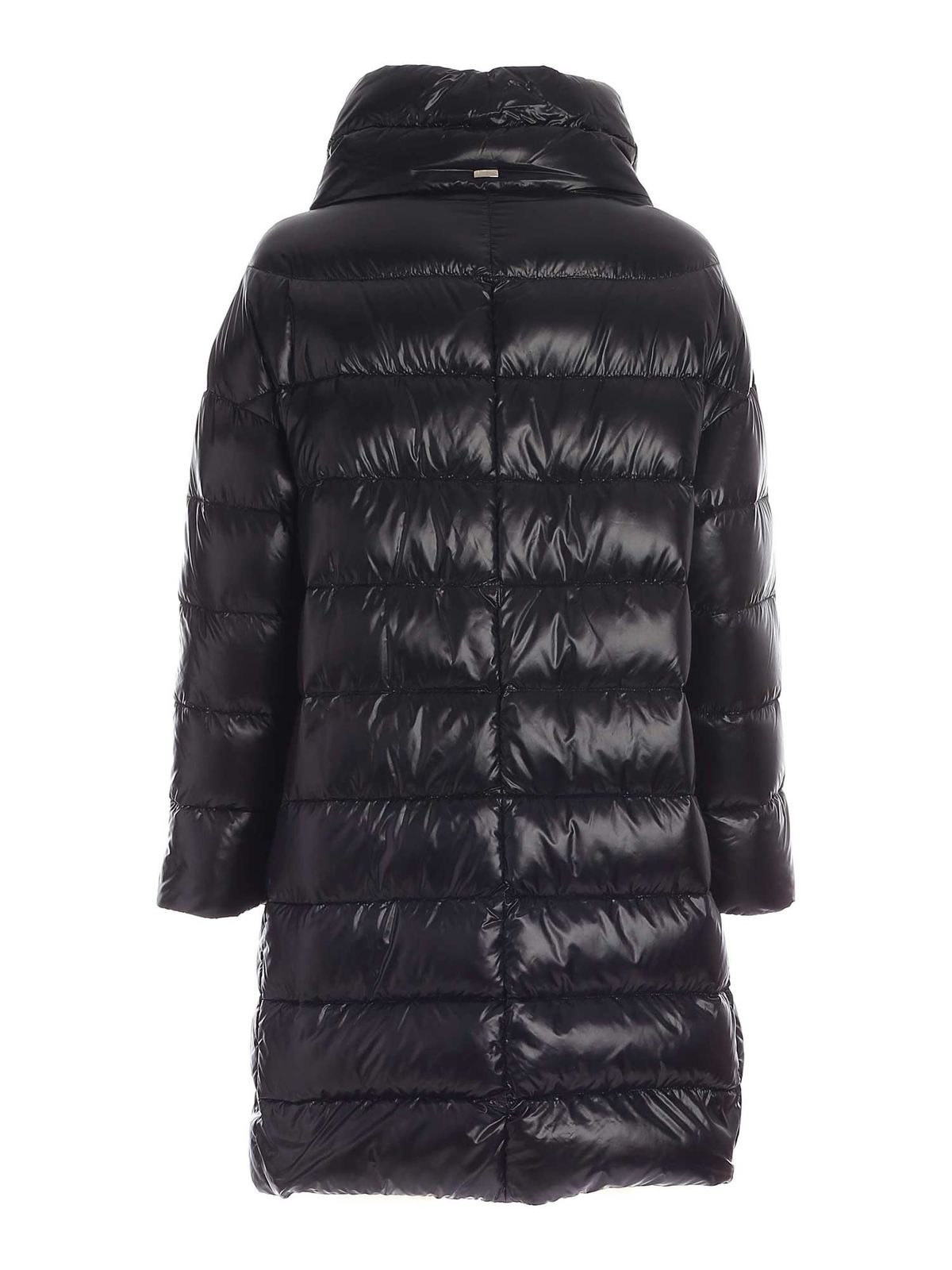 Midi down jacket Color: black Side pockets with press stud Rear metal logo detail Double slider zip fastening