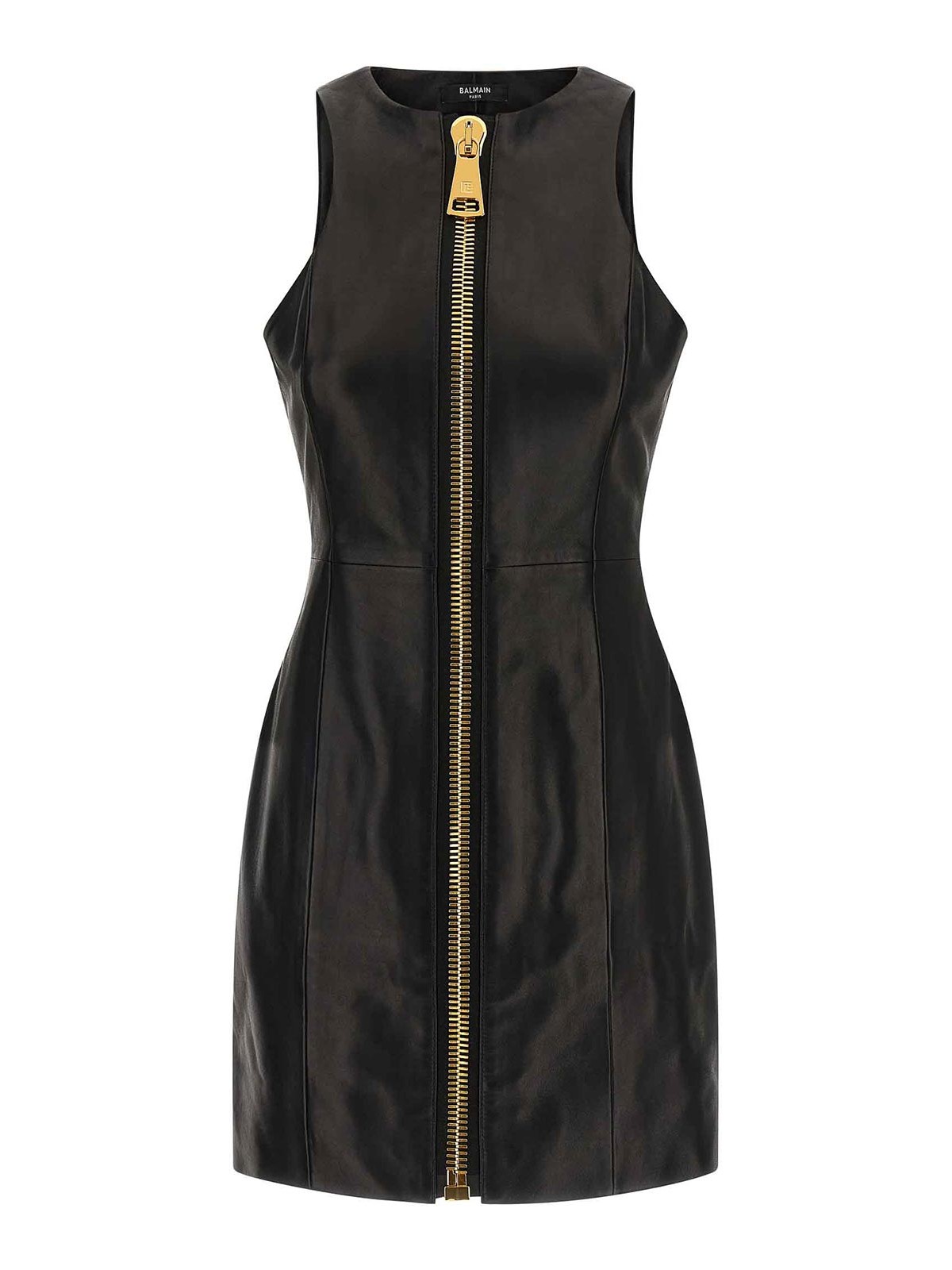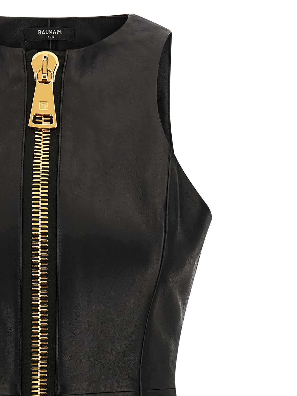 Balmain: crew necks - Maxi Zip Leather Dress