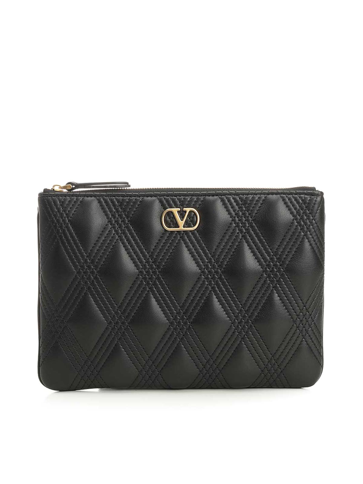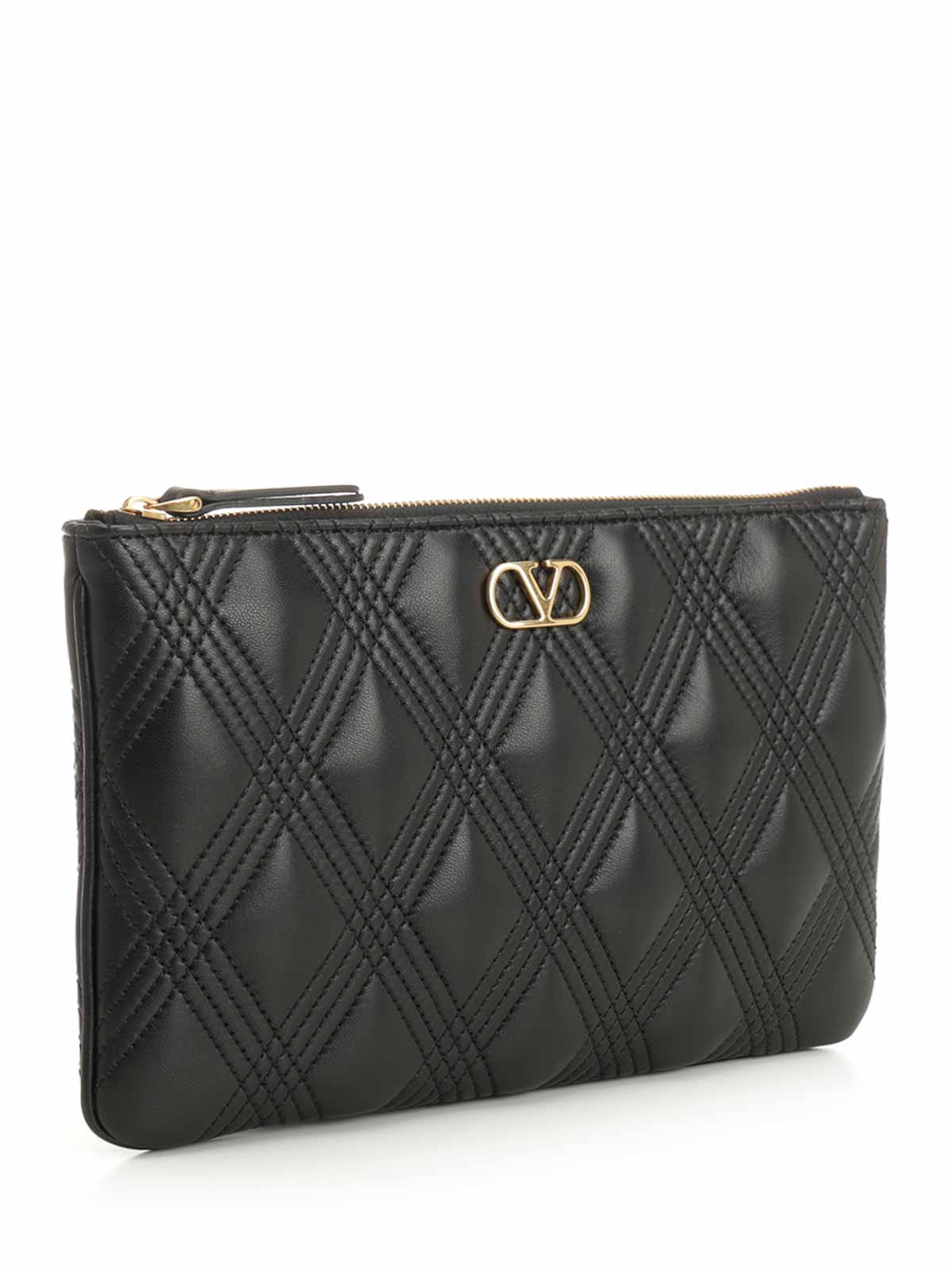 Medium quiltie clutch bag by valentino garavani with quilted workmanship with a pattern outlined by tone, on, tone stitching zip logo and parts with an antique finish