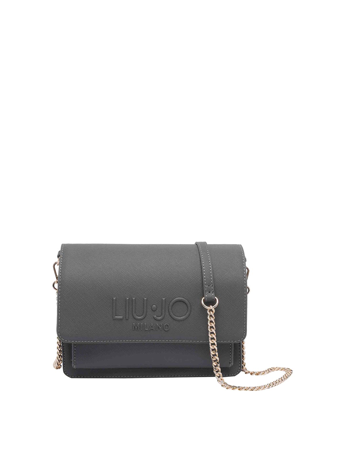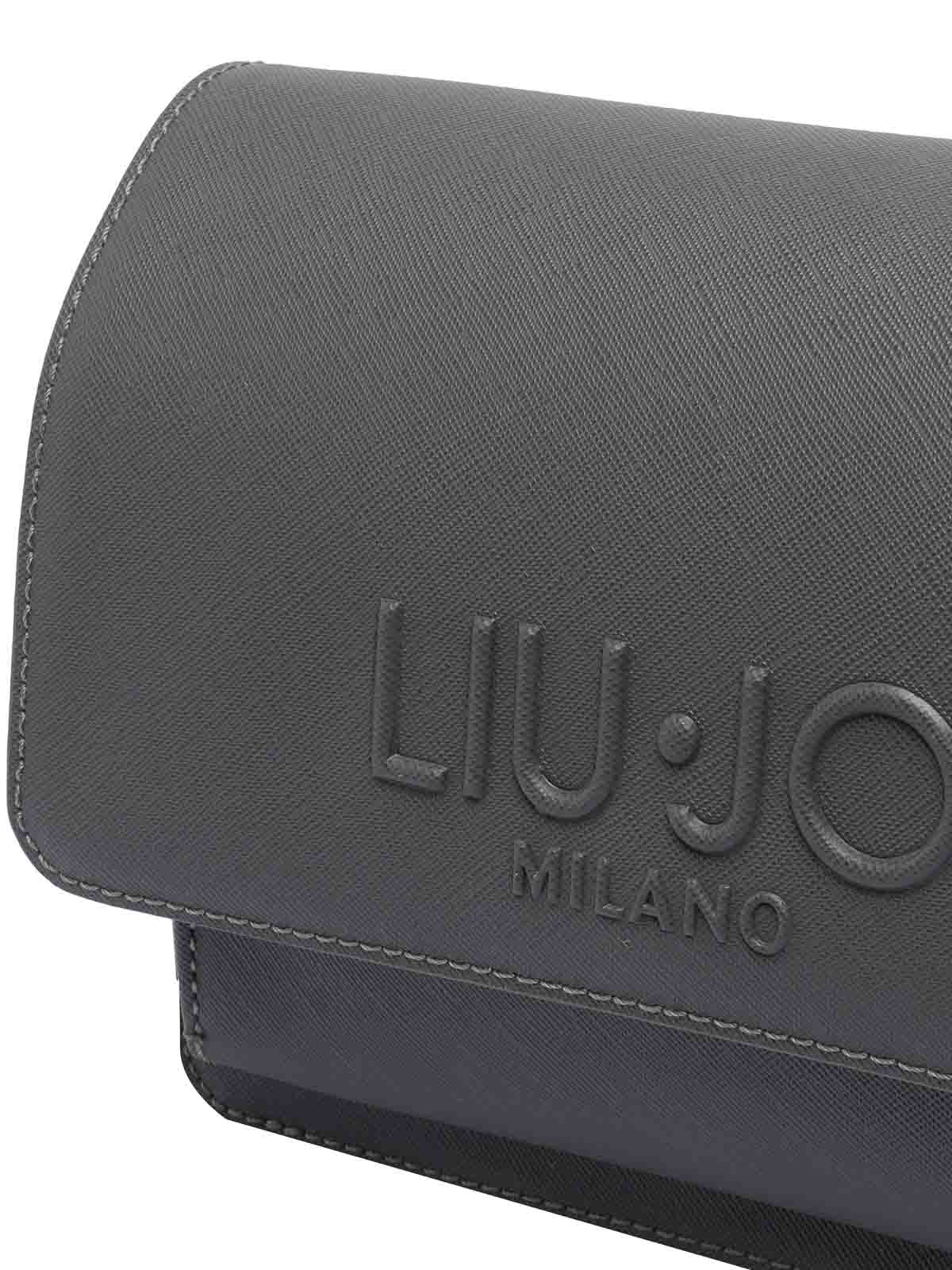 Liu jo dark grey medium crossbody bag zip open pockets removable strap frontal logo