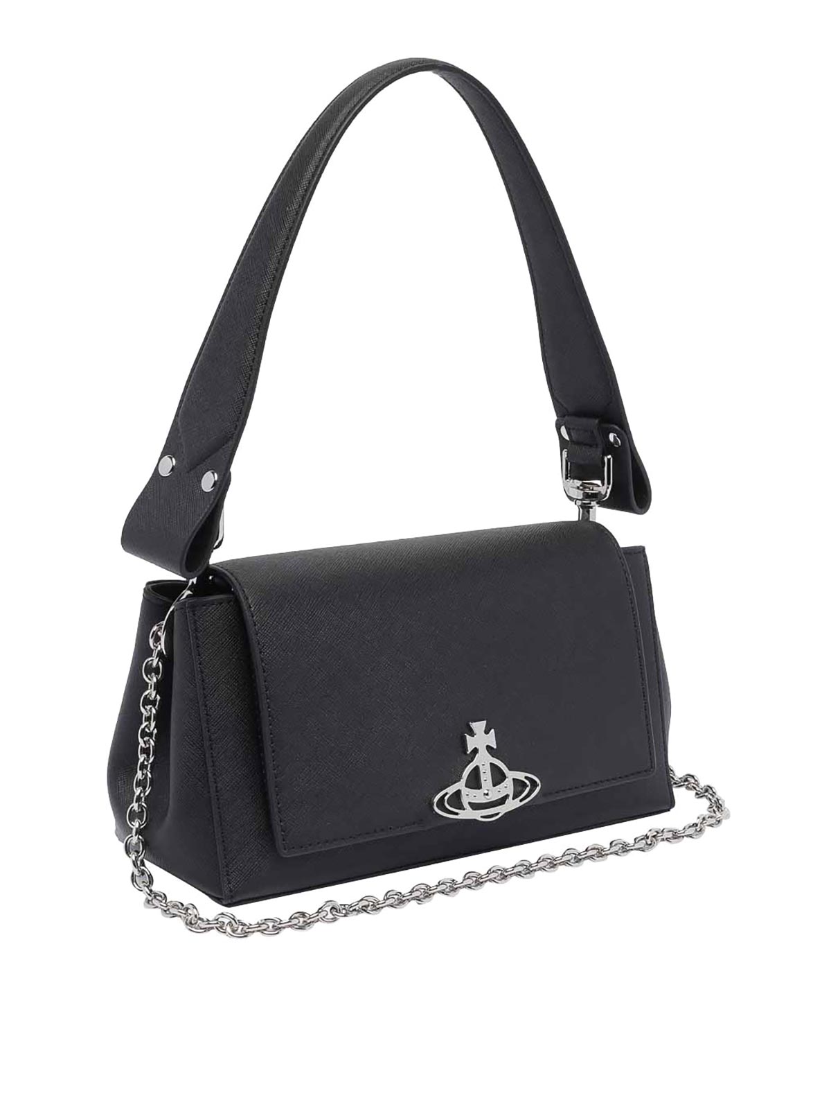 Vivienne westwood black medium hazel shoulder bag magnetic slots mirror removable chain strap frontal logo