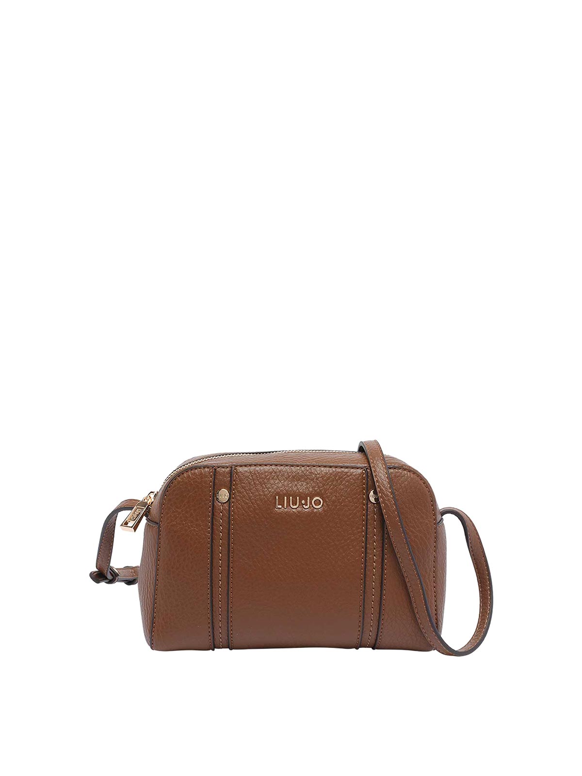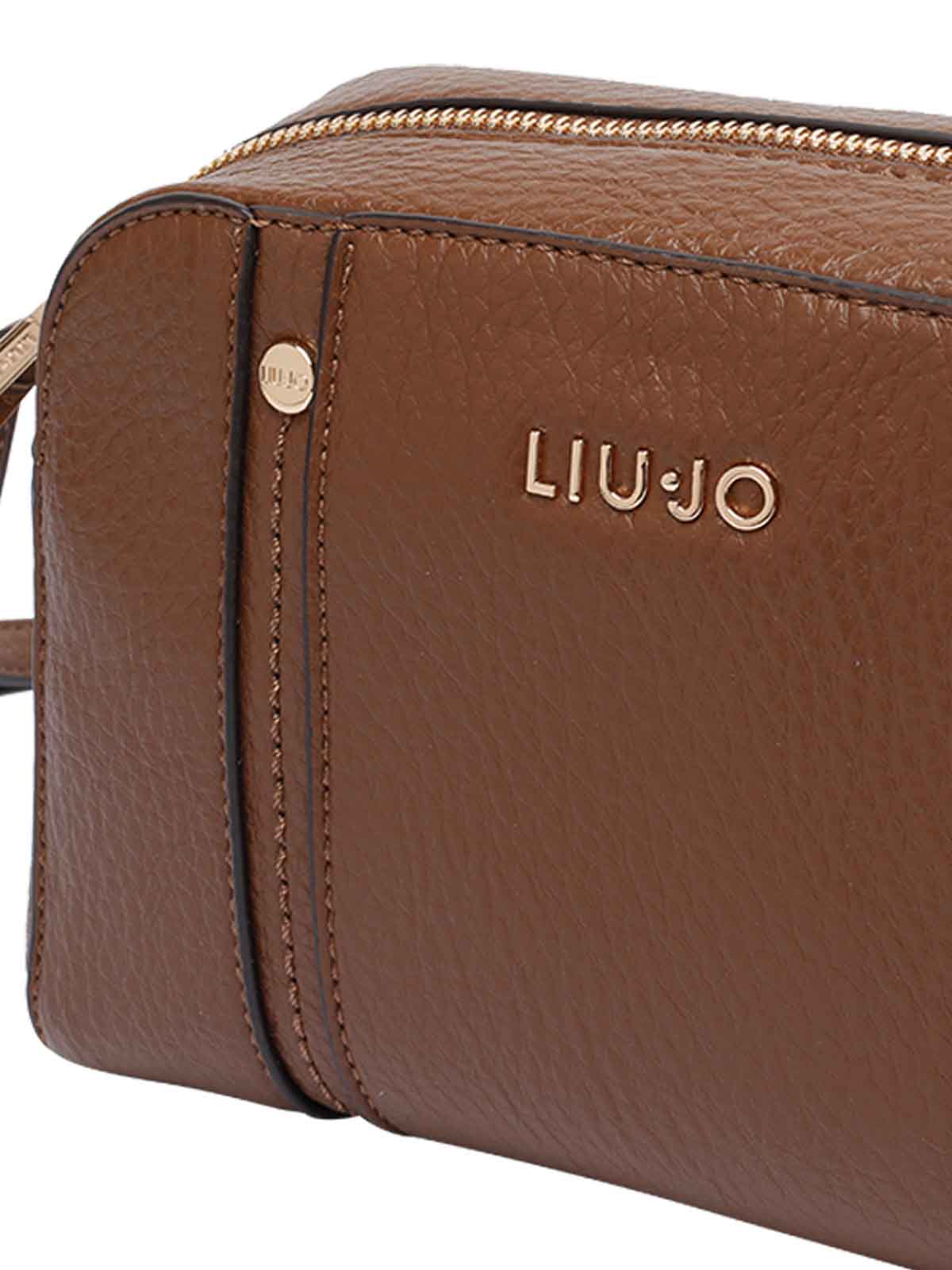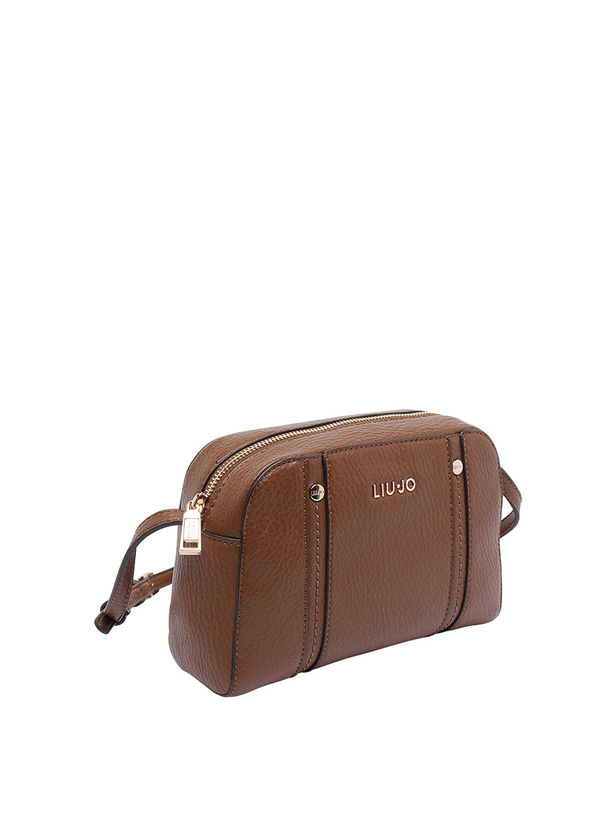 Liu jo brown medium logo crossbody bag zip zipped pocket adaptable strap frontal logo