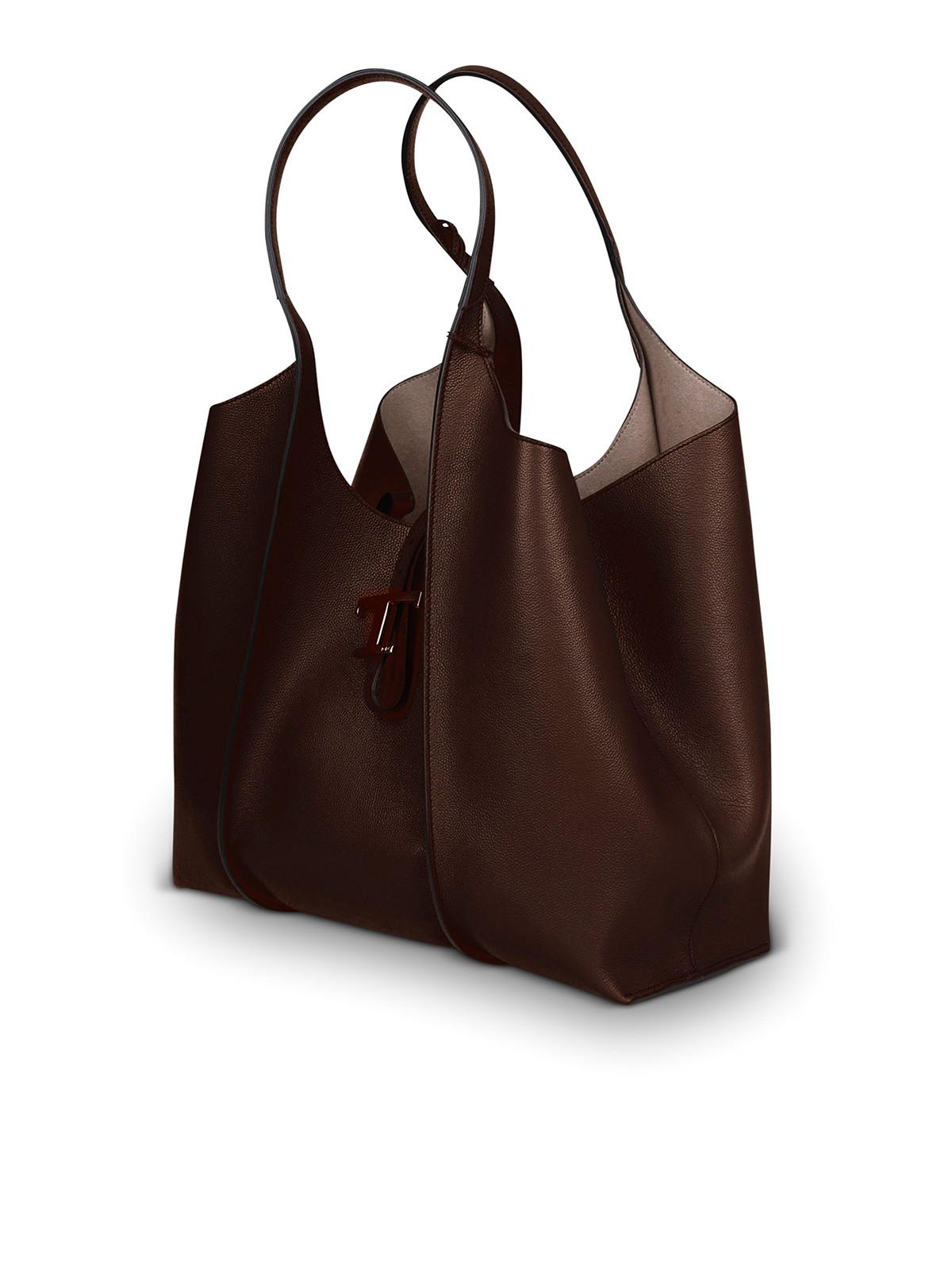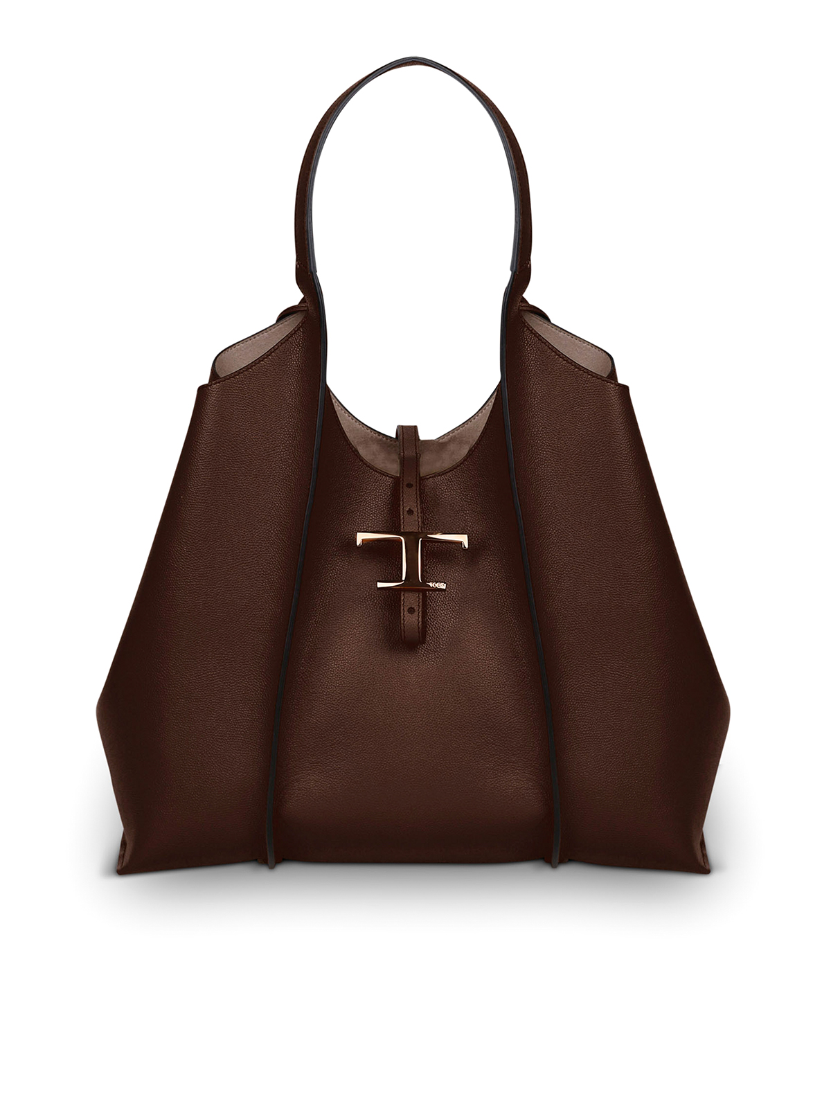 Medium timeless tote bag by tod's, plaque with logo, round handle, snap button closure,