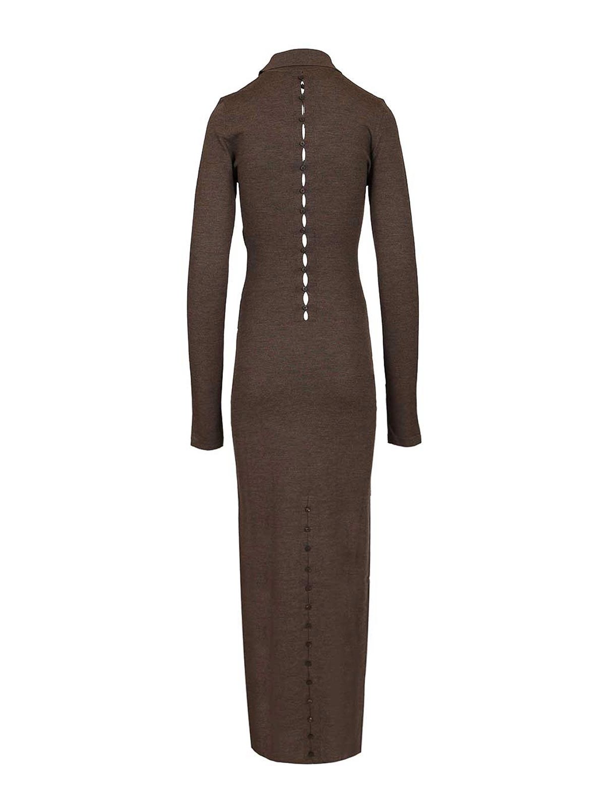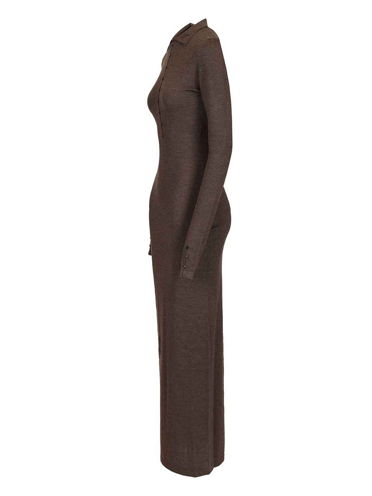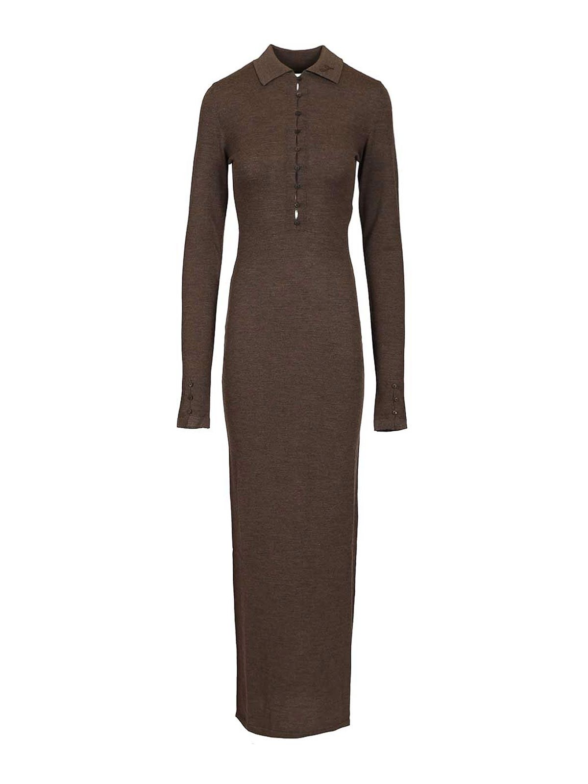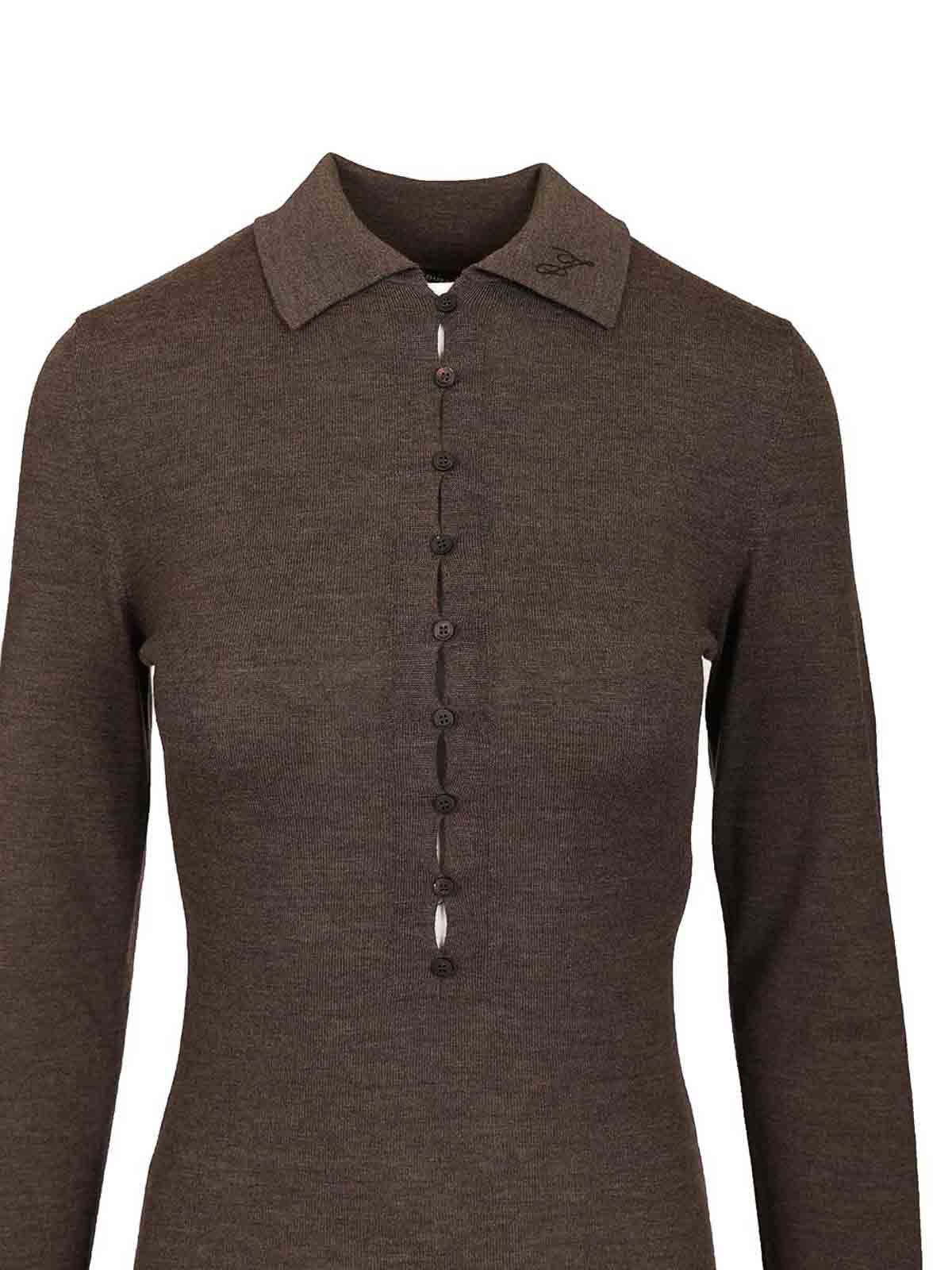 Knitted polo dress with embroidered j buttons on the collar long polo-style buttoning elongated open buttonholes