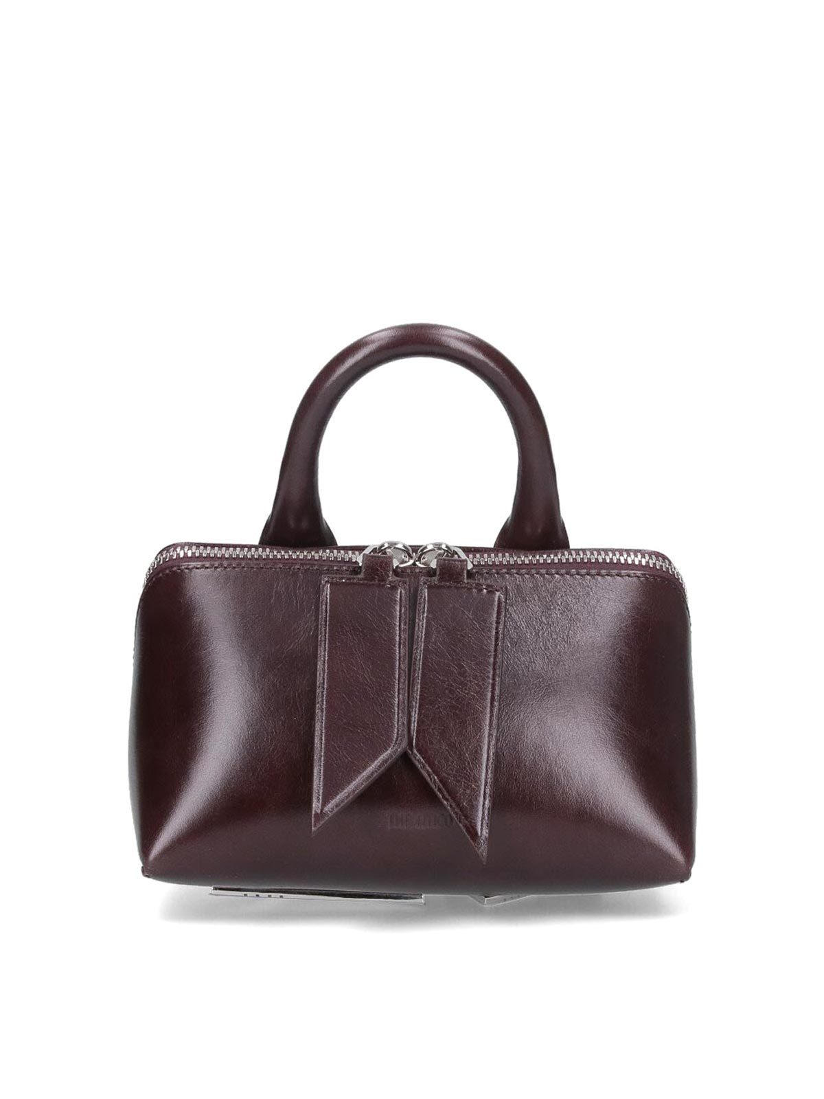 MINI FRIDAY BAG The Attico, in Red Crinkle Vitello leather, Bordeaux tonalit, handle, adjustable and removable shoulder strap, double zip closure with maxi tiralampo, logo imprinted in front, a flat inner pocket, a unique internal compartment, metal feet on a bottom.