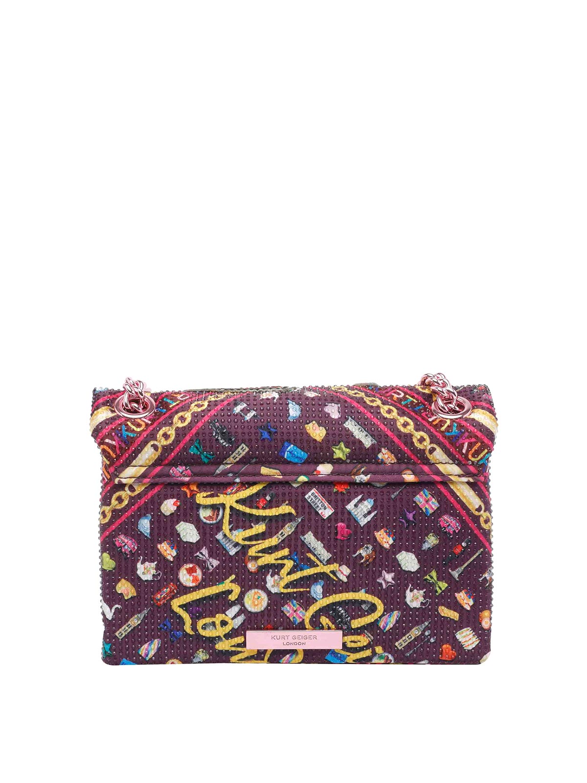 Kurt geiger fuchsia mini leather kensington crossbody bag, magnetic closure, adaptable sliding chain strap, patterned