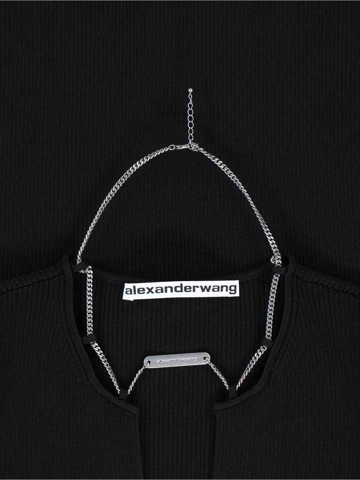 MINI VISTA MISTO Alexander Wang, black, coastal processing, V -neck, V -neck, removable chain detail in silver metal with engraved logo, short sleeves, straight hem.