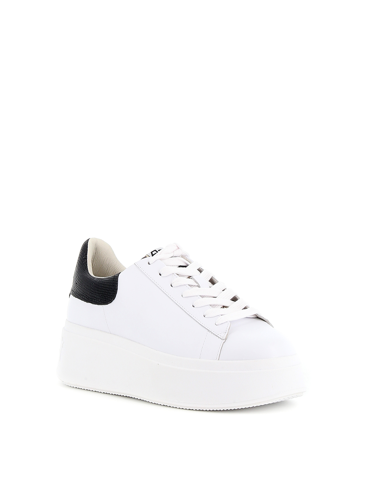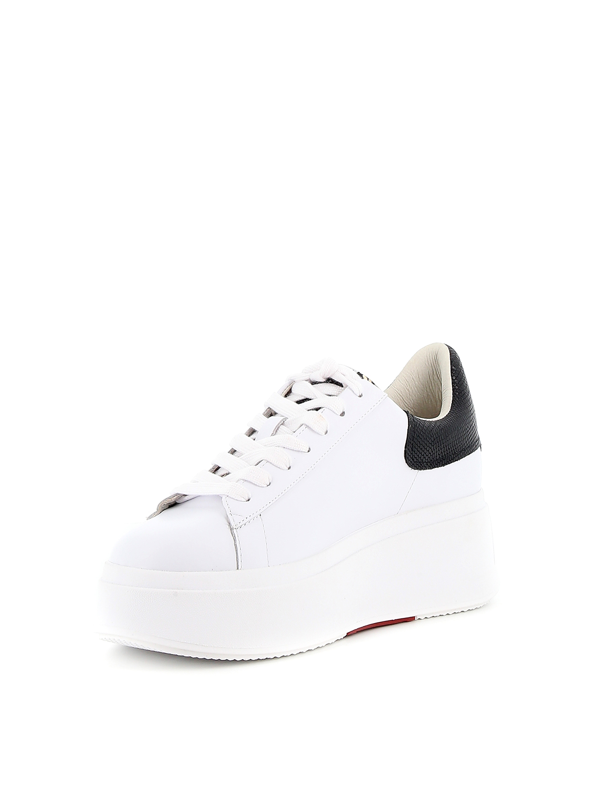 Sneakers featuring leather upper and lining, contrasting python leather heel tab and rubber platform sole.