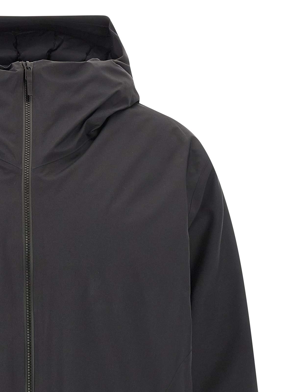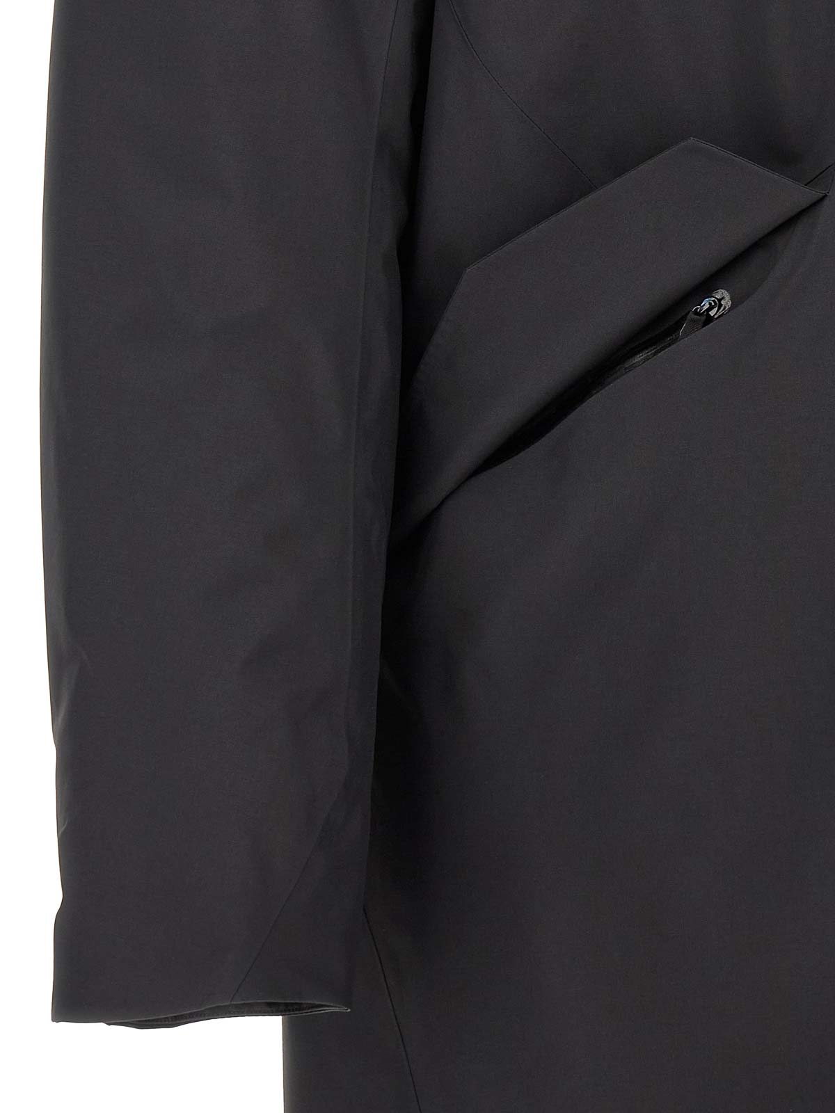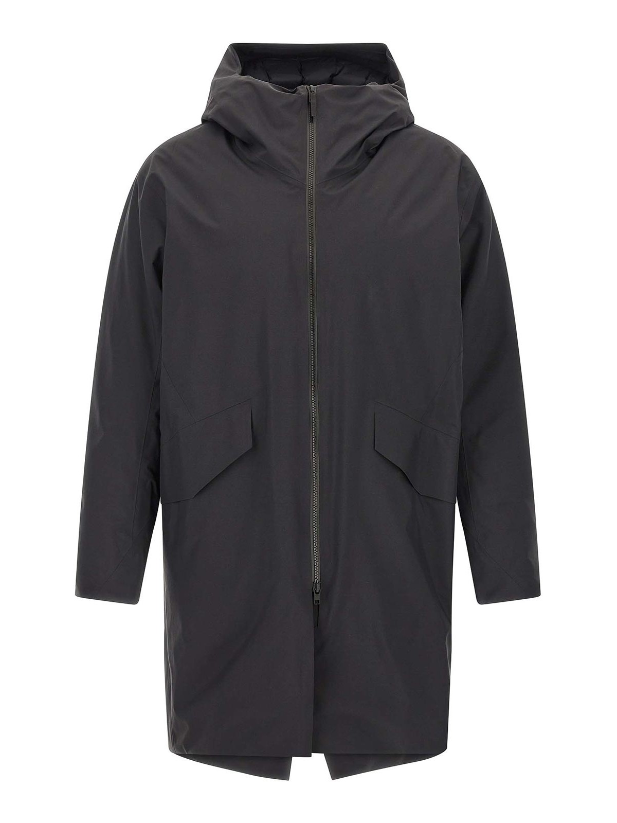 monitor' gore-tex epe jacket, quilted and goose down padded lining with 'down composite mapping' positioning, gore c-knit caseback, 'veilance stormhood hood', front zip closure, pockets, long sleeves, terratex insert at the back, asymmetrical hem with fishtail silhouette at the back.