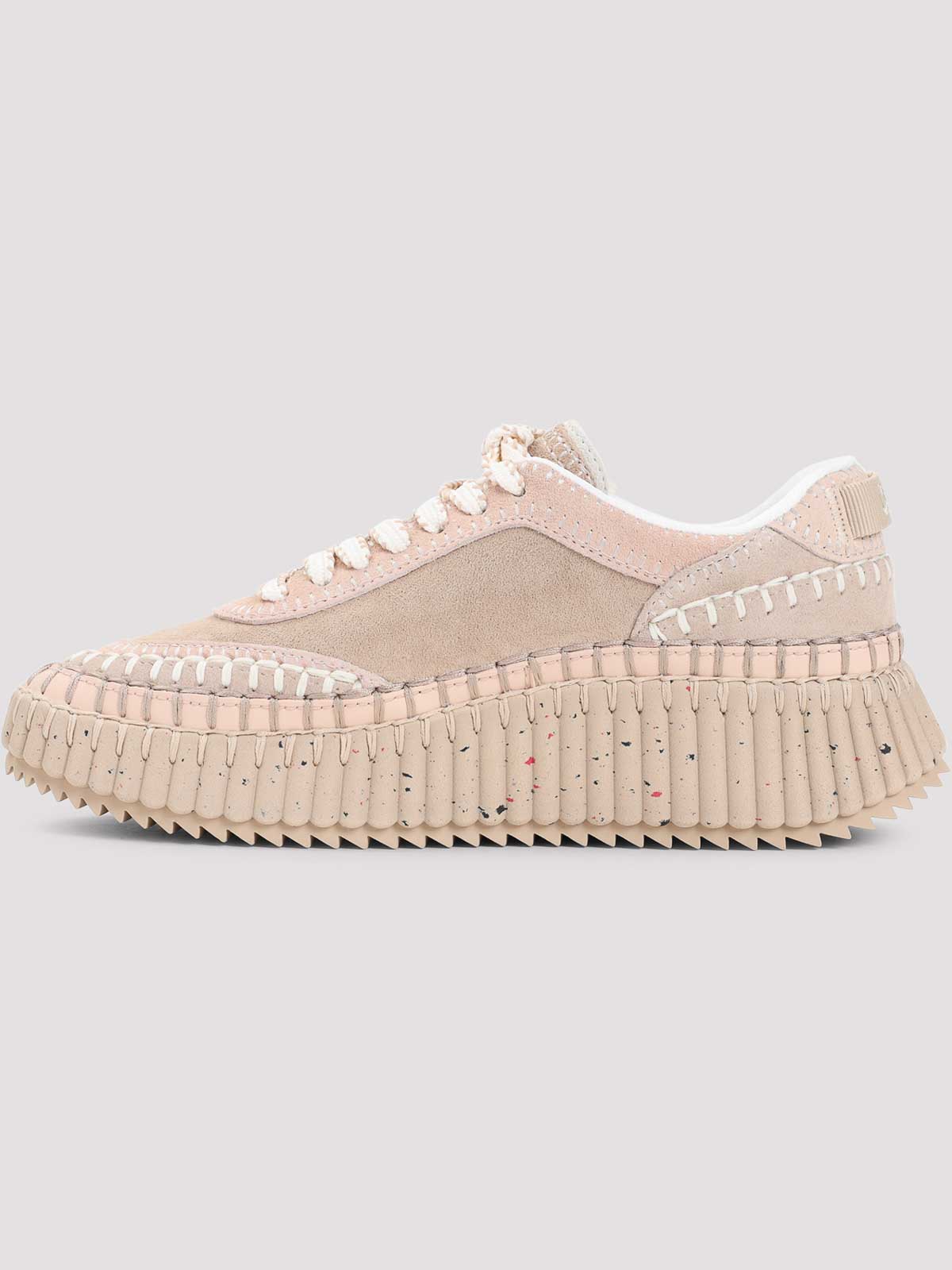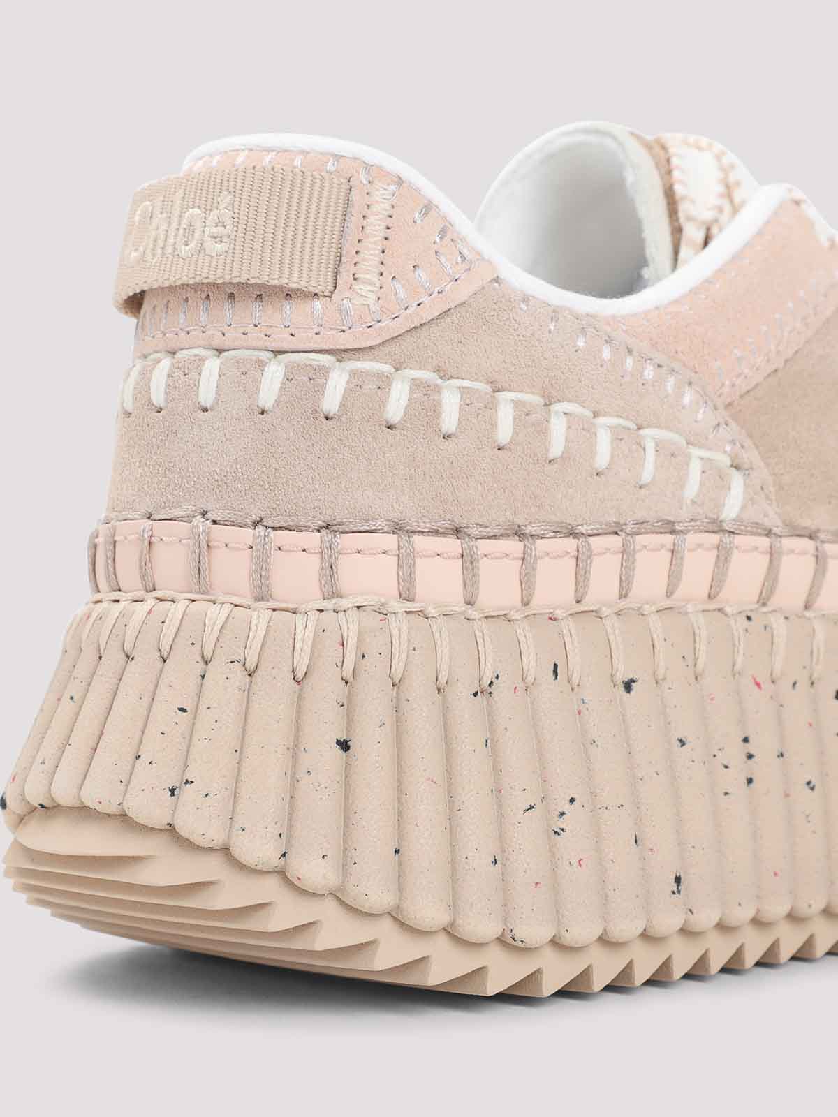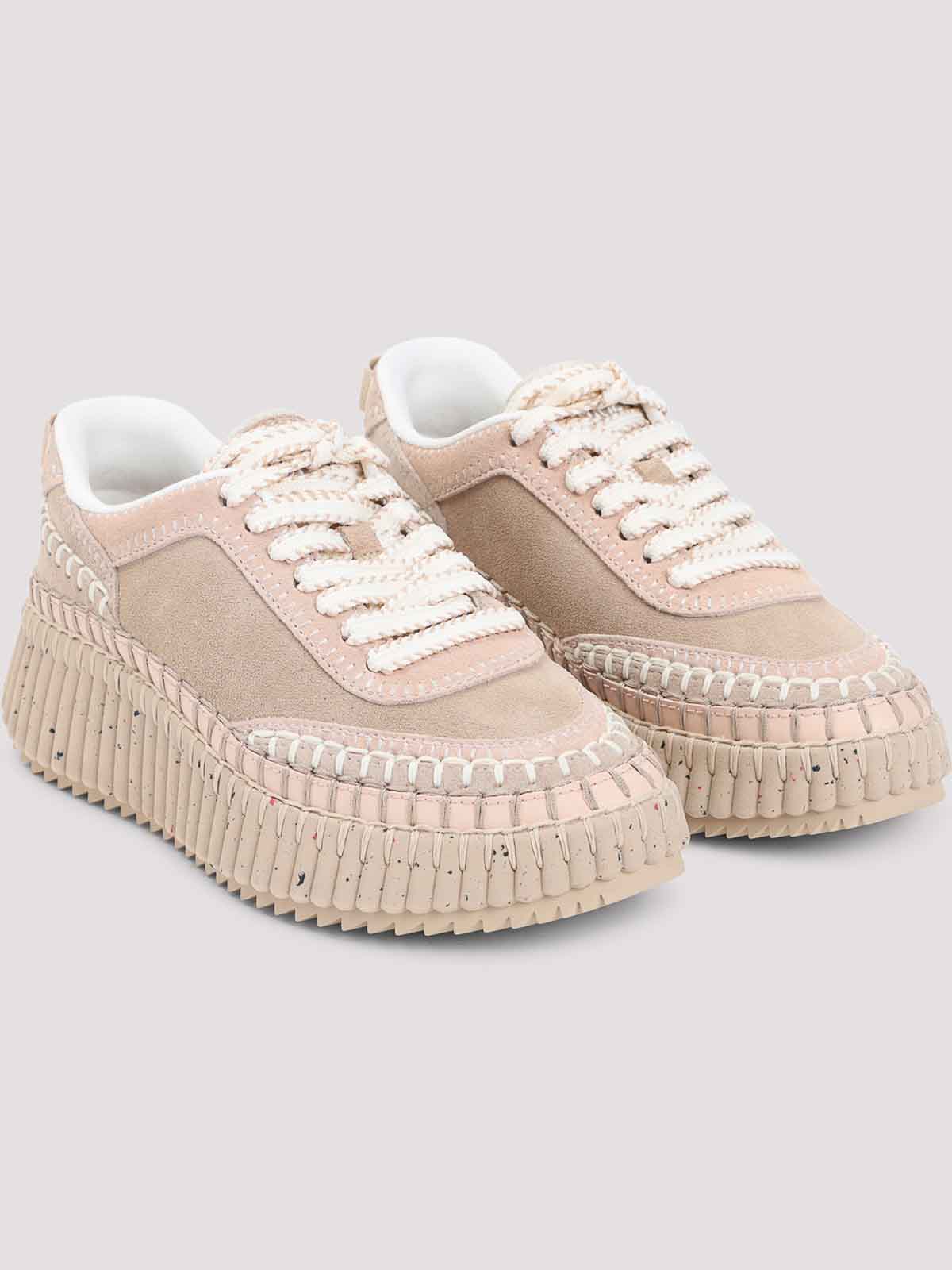 Chloe nama beige sneakers beige multi, panel construction contrasting hand, stitching round toe lace, up logo embroidered on the tongue logoed loop on the branded in chunky out