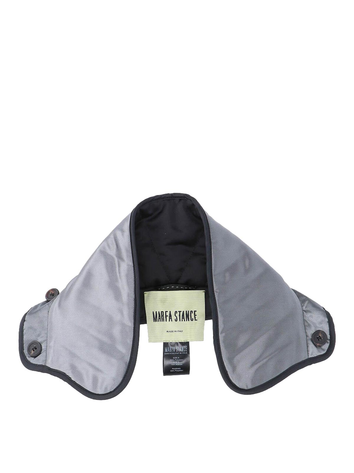 Marfa stance logo collar, in gray fabric, button closure, contrasting logo label detail.