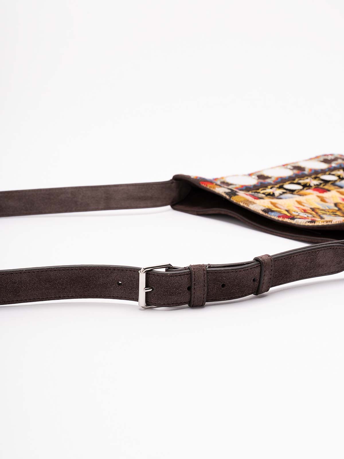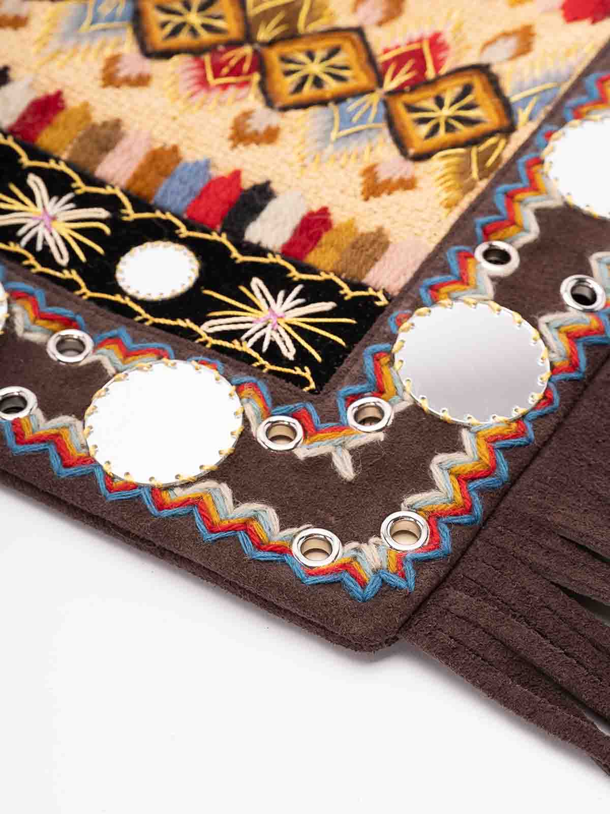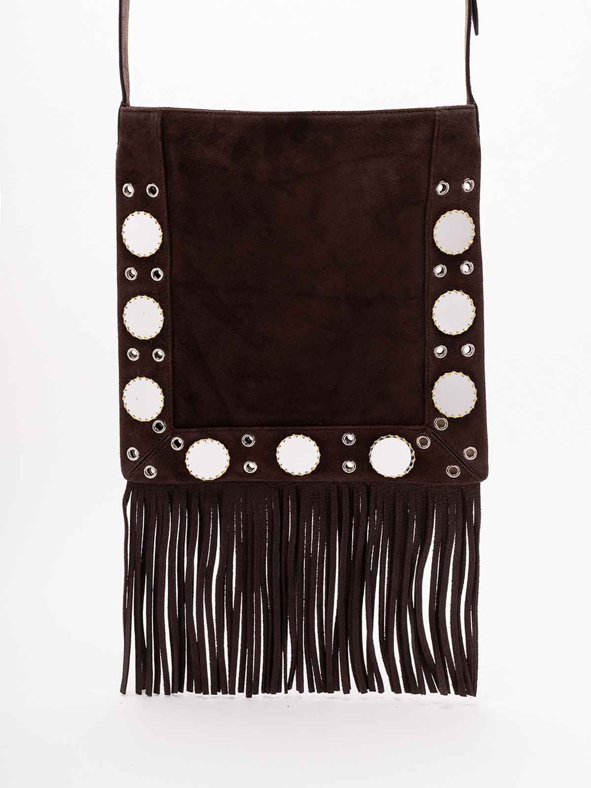 Valentino garavani nellcte embroidered shoulder bag with geometric pattern and fringes trim decorated with mirrors and rivets the bag can be comfortably worn on the shoulder / crossbody thanks to the adjustable shoulder strap palladium, finis