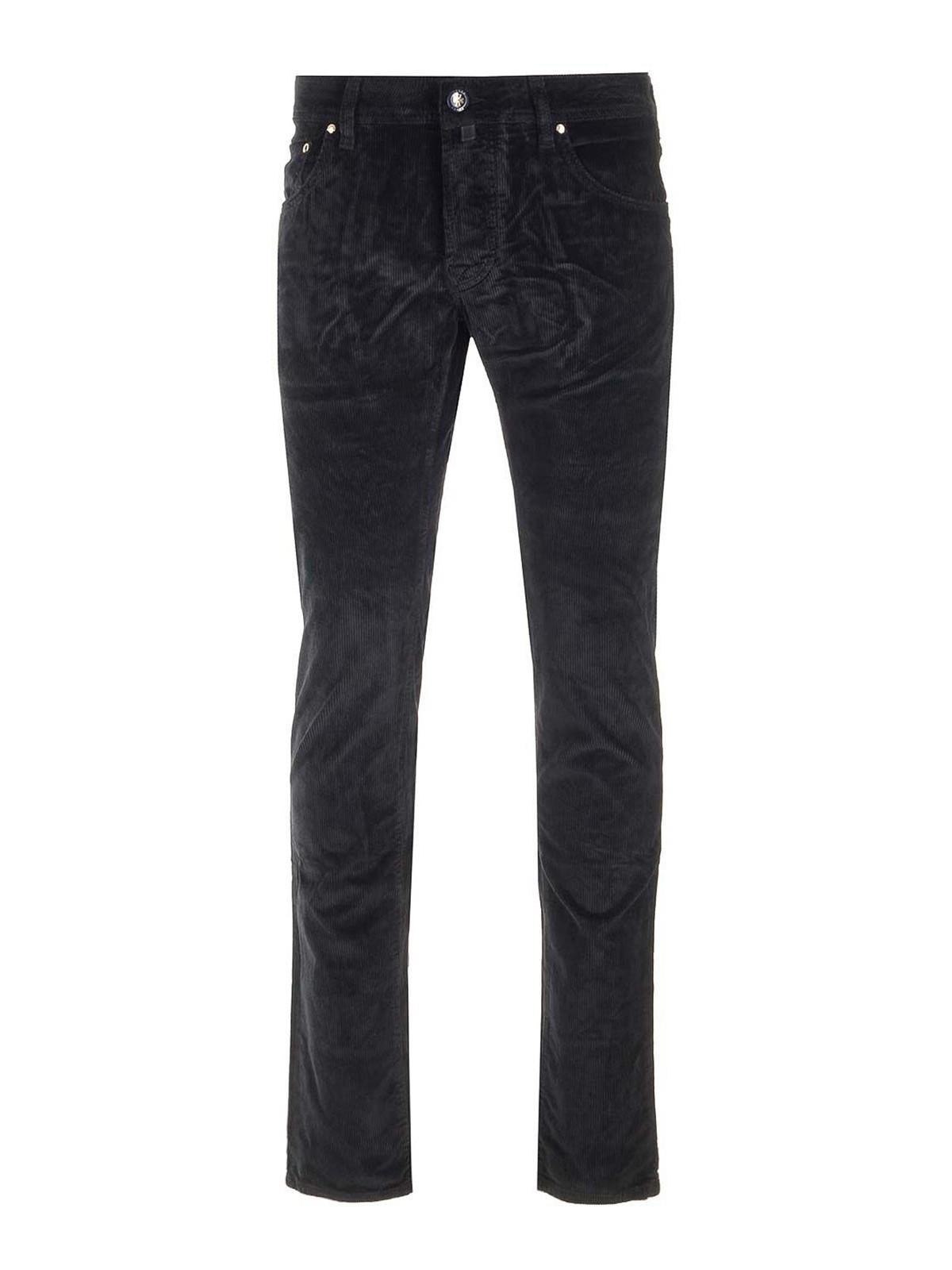 nick slim trousers by jacopb cohen in stretch cotton featuring a low waist, tone-on-tone stitching and logo embroidered on the pocket