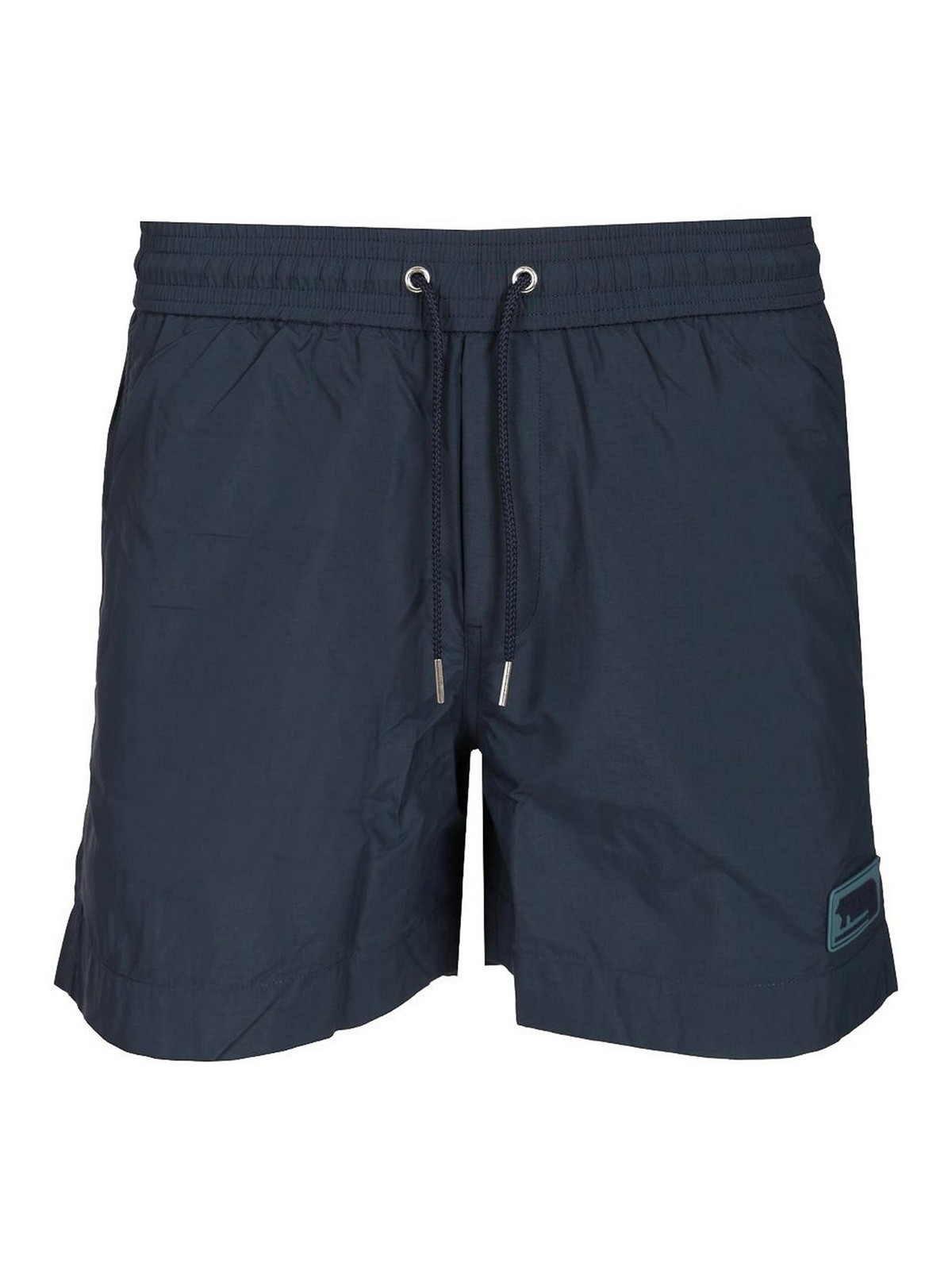 Nylon swimsuit with elastic waistband and drawstring, welt pockets and back pocket