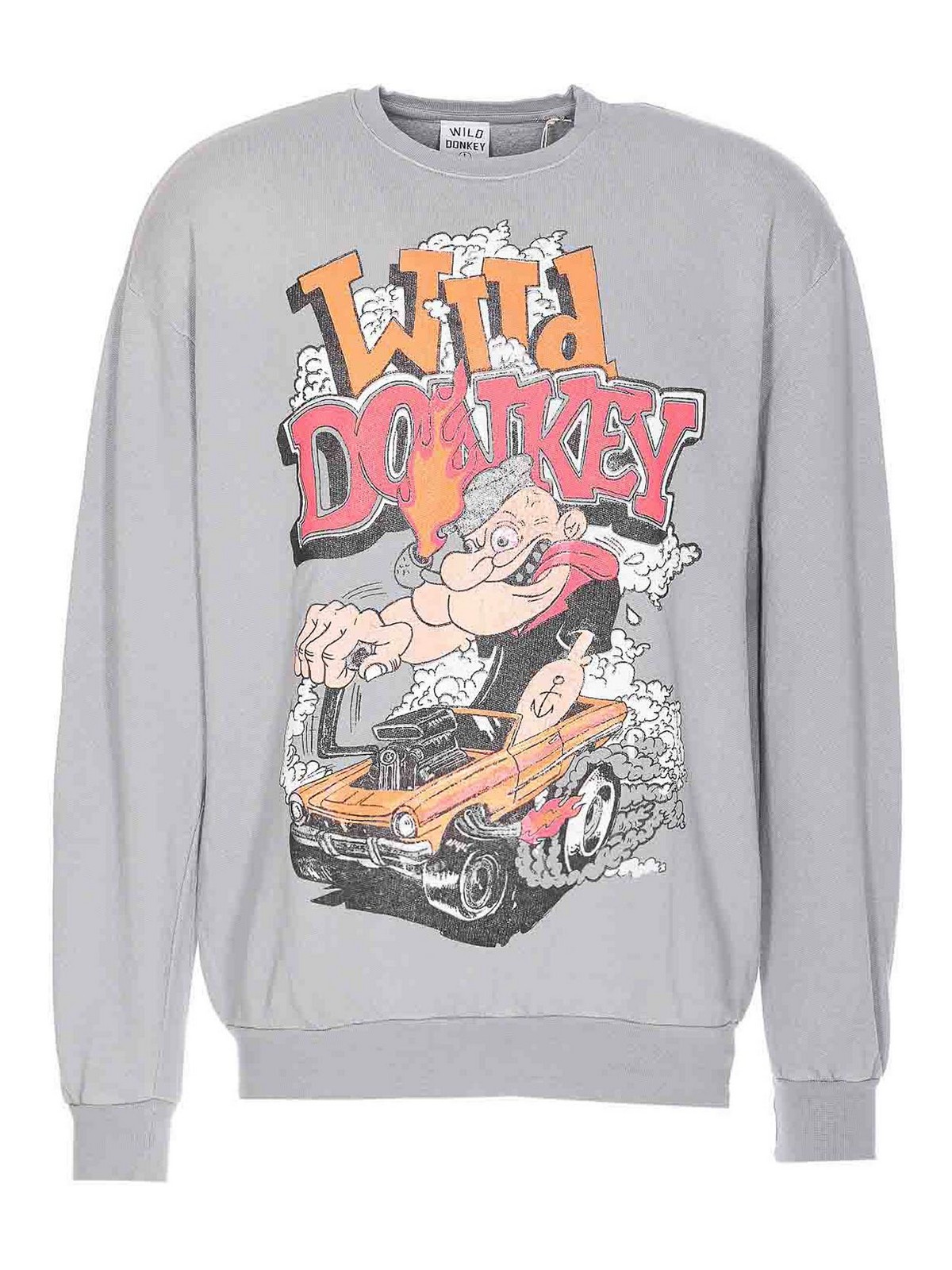WILD DONKEY: crew necks - Old Grey Rat Rice Sweatshirt