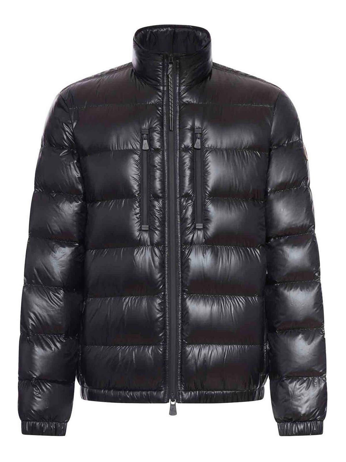 down filling, structured high collar, two-way zip front closure, vertical front pockets with heat-sealed zips, long sleeves with elasticated cuffs, elasticated hem, regular horizontal quilting, regular fit, color: black