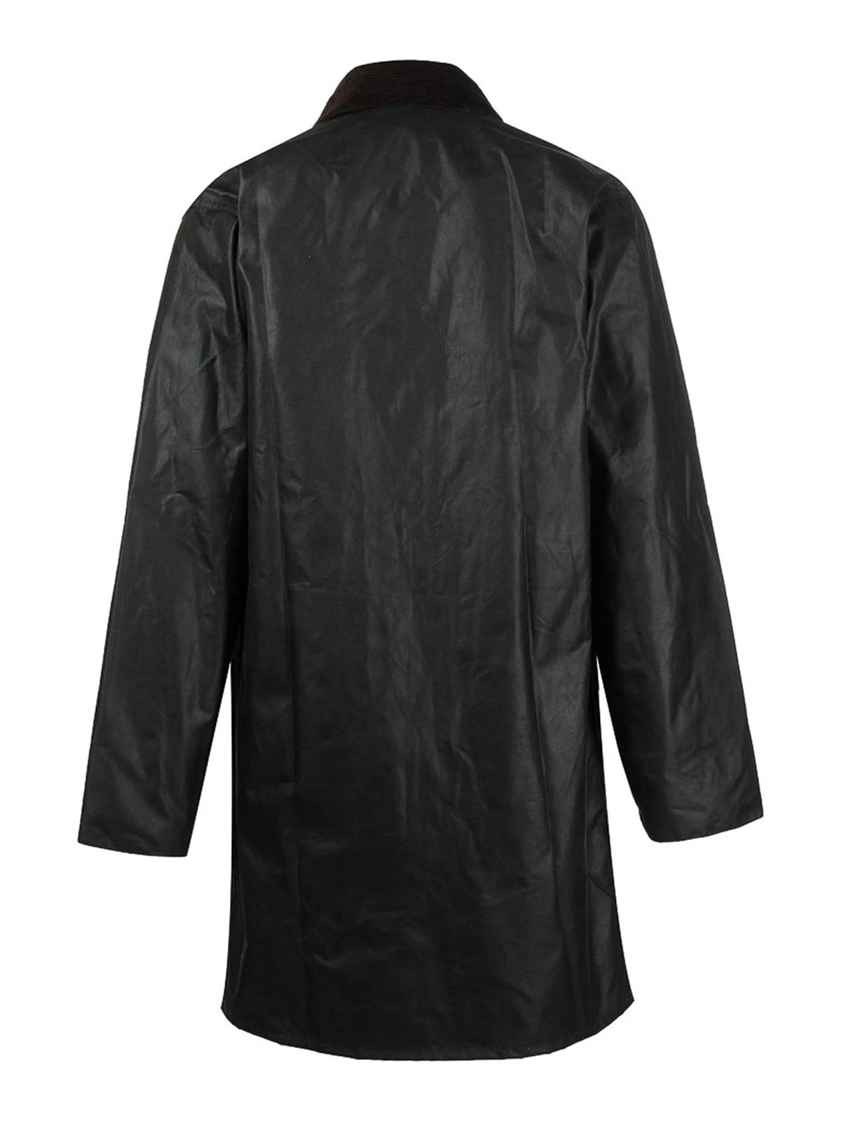 Black classic collar press, stud two flap pockets long sleeves straight hem