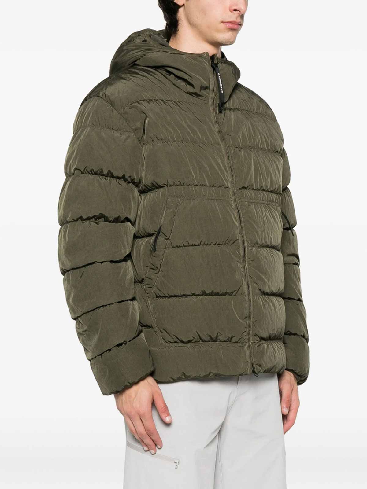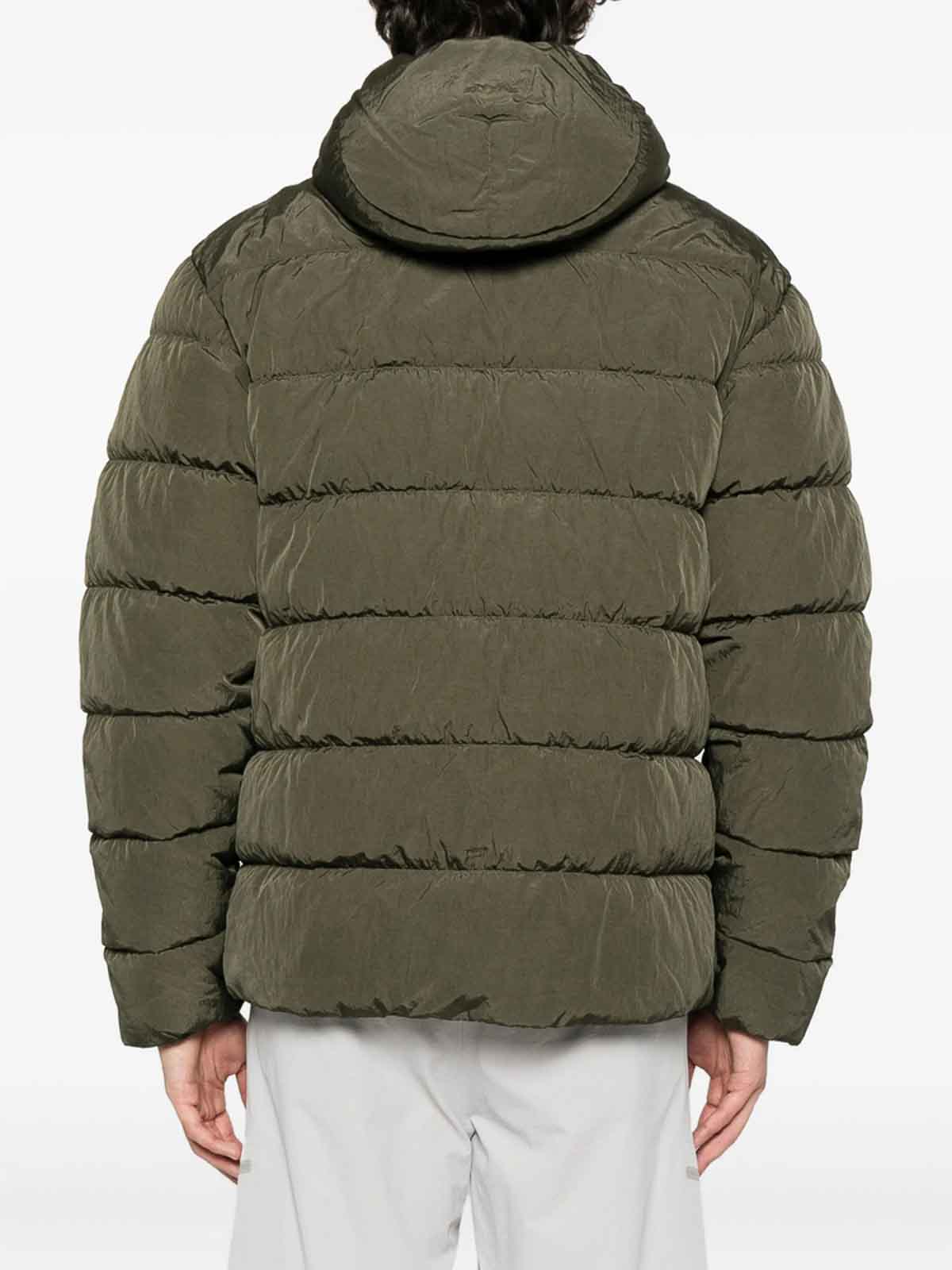 Olive green quilted design hooded neckline zip fastening long sleeves