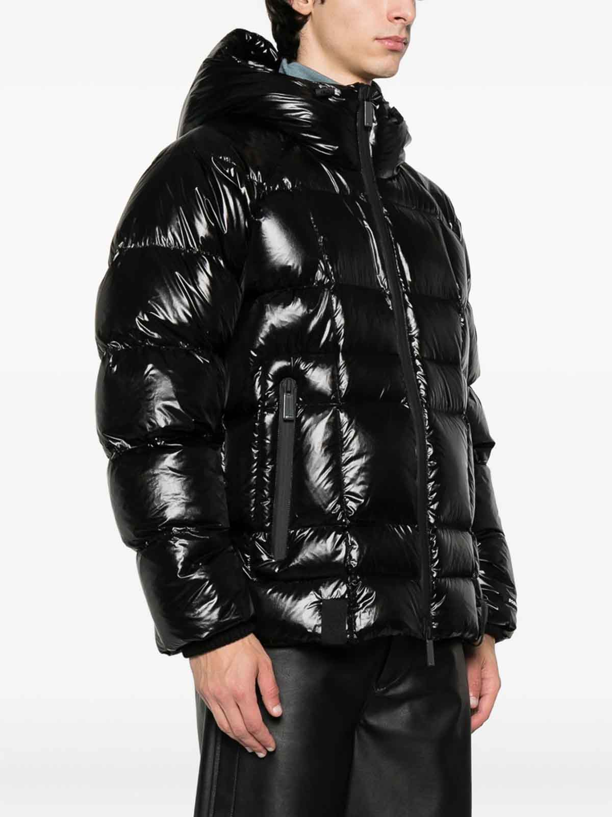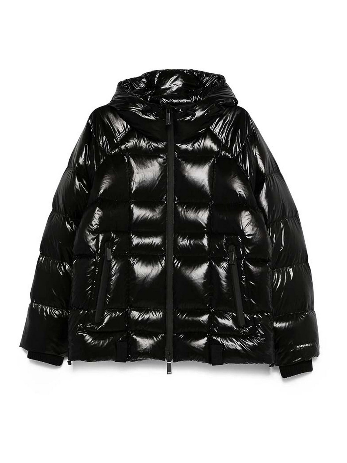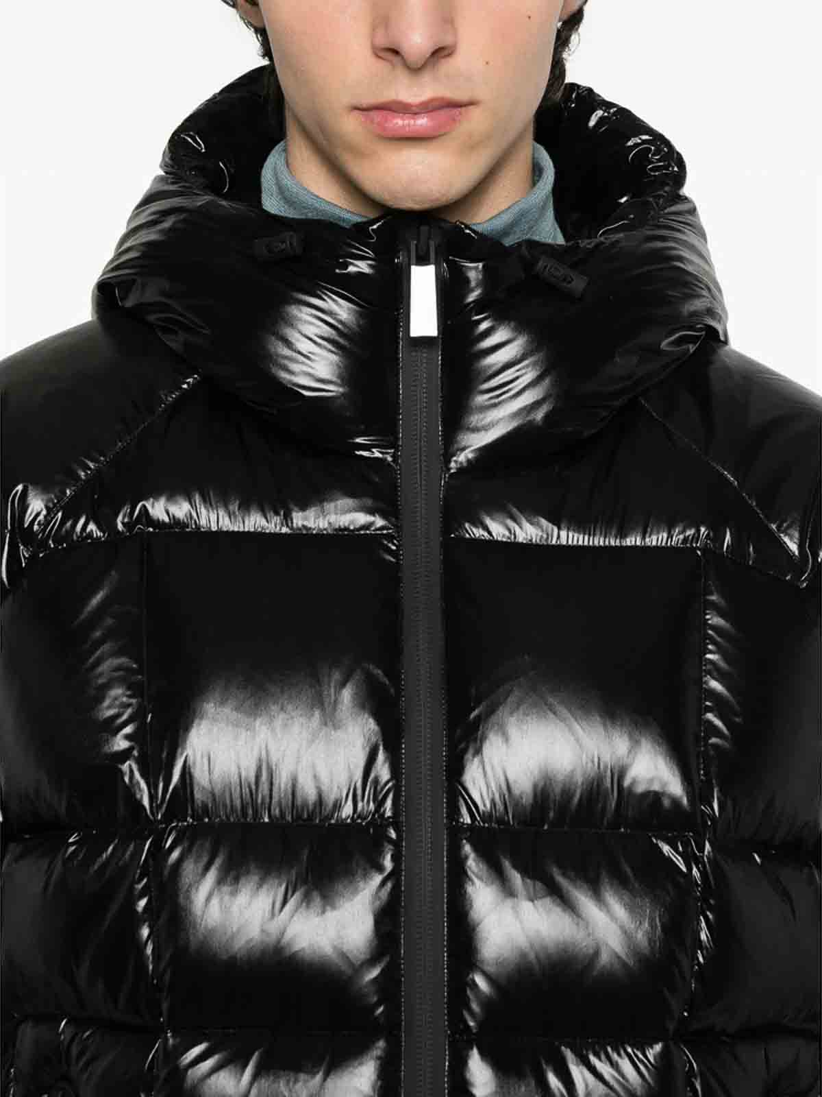 Black quilted design drawstring hood zip adjustable drawstring hem ribbed cuffs