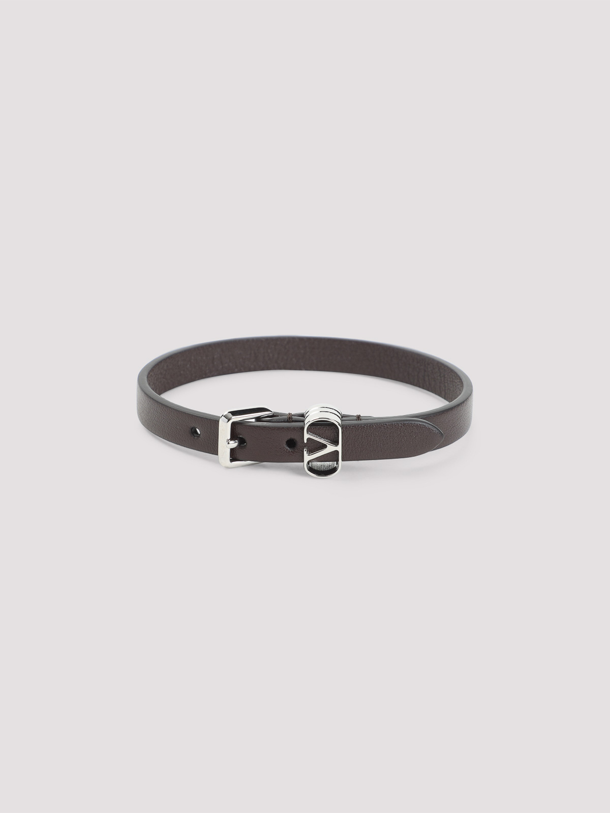 Valentino garavani oak brown calf leather ovalette bracelet. pure oak brown calf leather bracelet, adjustable design, front silver-tone buckle, front silver-tone belt loop with signature v logo.
