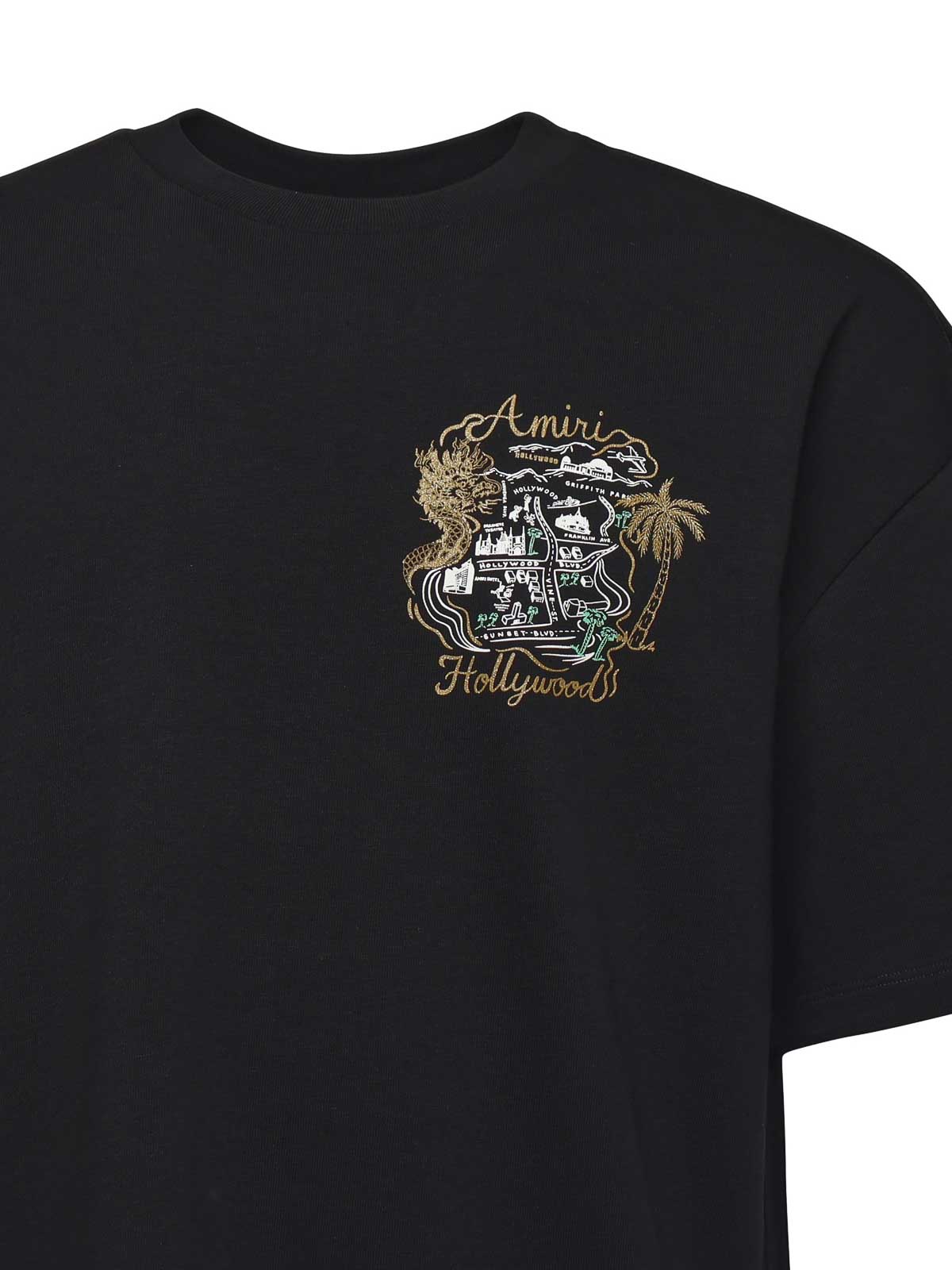 Oversize black t-shirt with amiri hollywood print on chest and back circle neckline short sleeves straight bottom color black