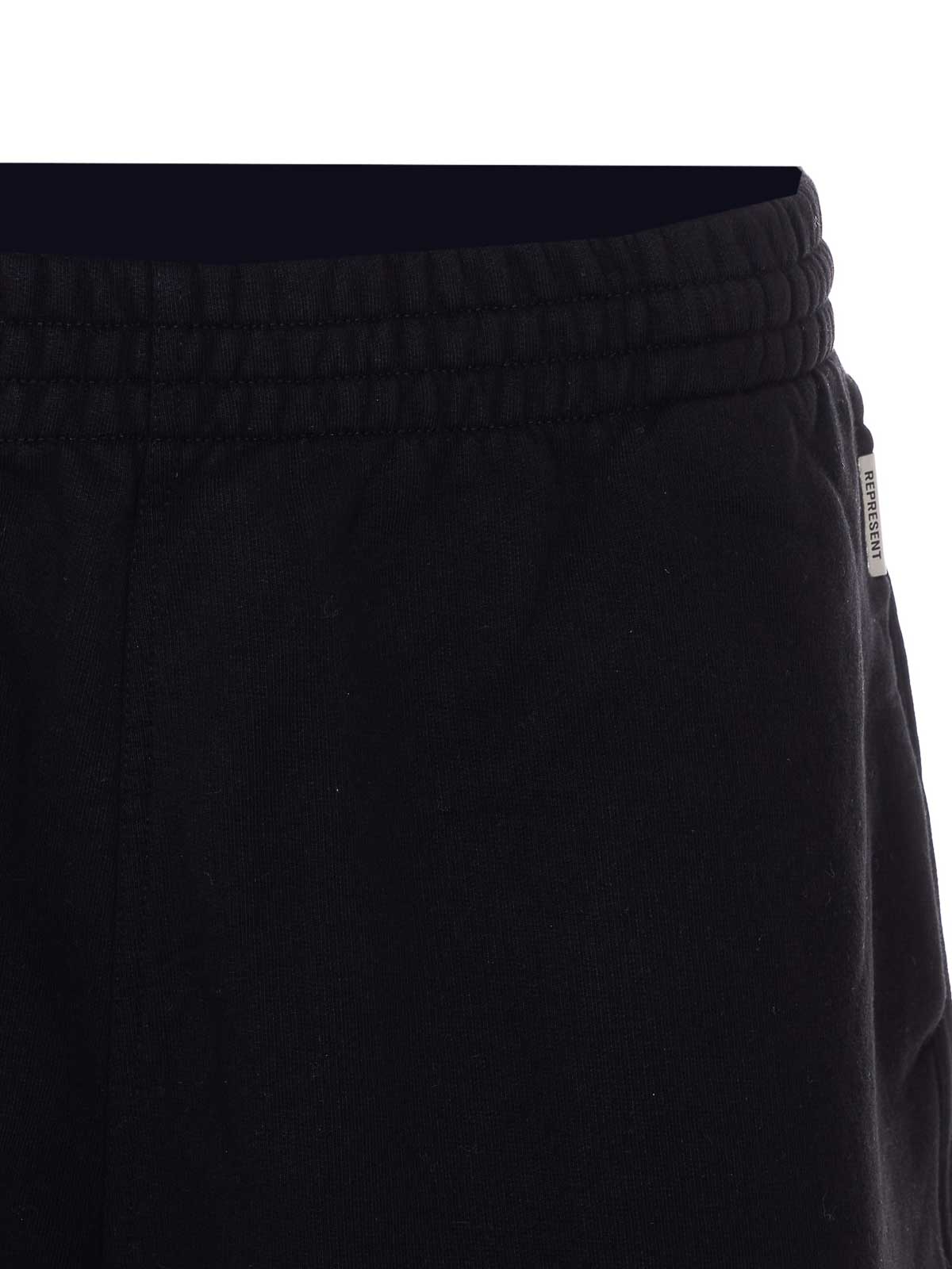 Represent black representowner shorts, elasticized on waist, lateral pockets, coulisse on waist, print logo on the front