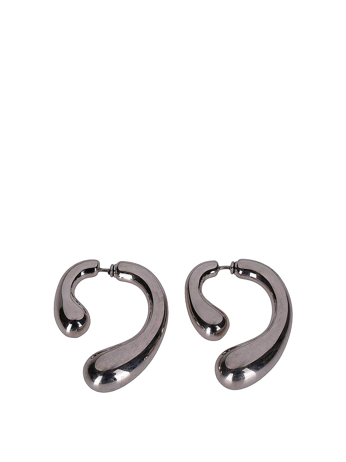Large silver brass earrings, sculptural design, silhouette that wraps around the ear.