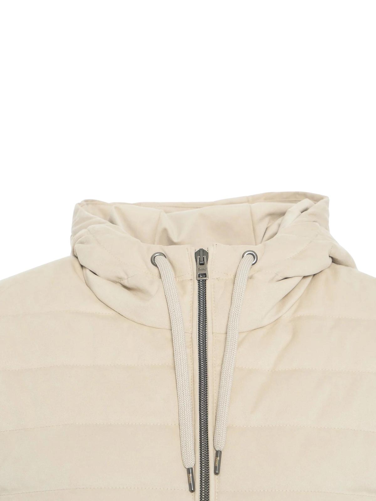 The Herno jacket, an outerwear piece that perfectly combines tailored style and technical functionality, is crafted from tightly woven recycled nylon that's lightweight, water-repellent, and soft to the touch. It features a matte finish, designed for those seeking a refined yet practical look, ideal for the city or for elegant travel in variable weather conditions.