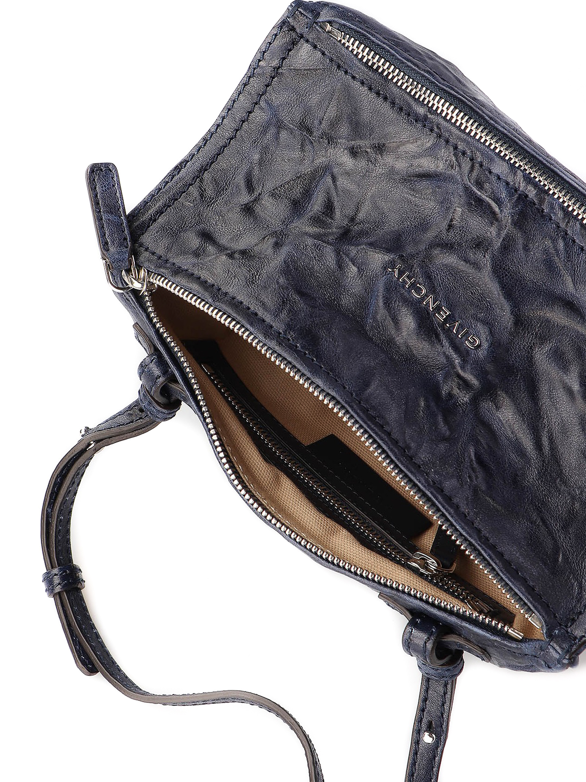 Grainy leather cube shaped bag featuring outer zipped pocket, adjustable and removable shoulder strap and zip fastening.