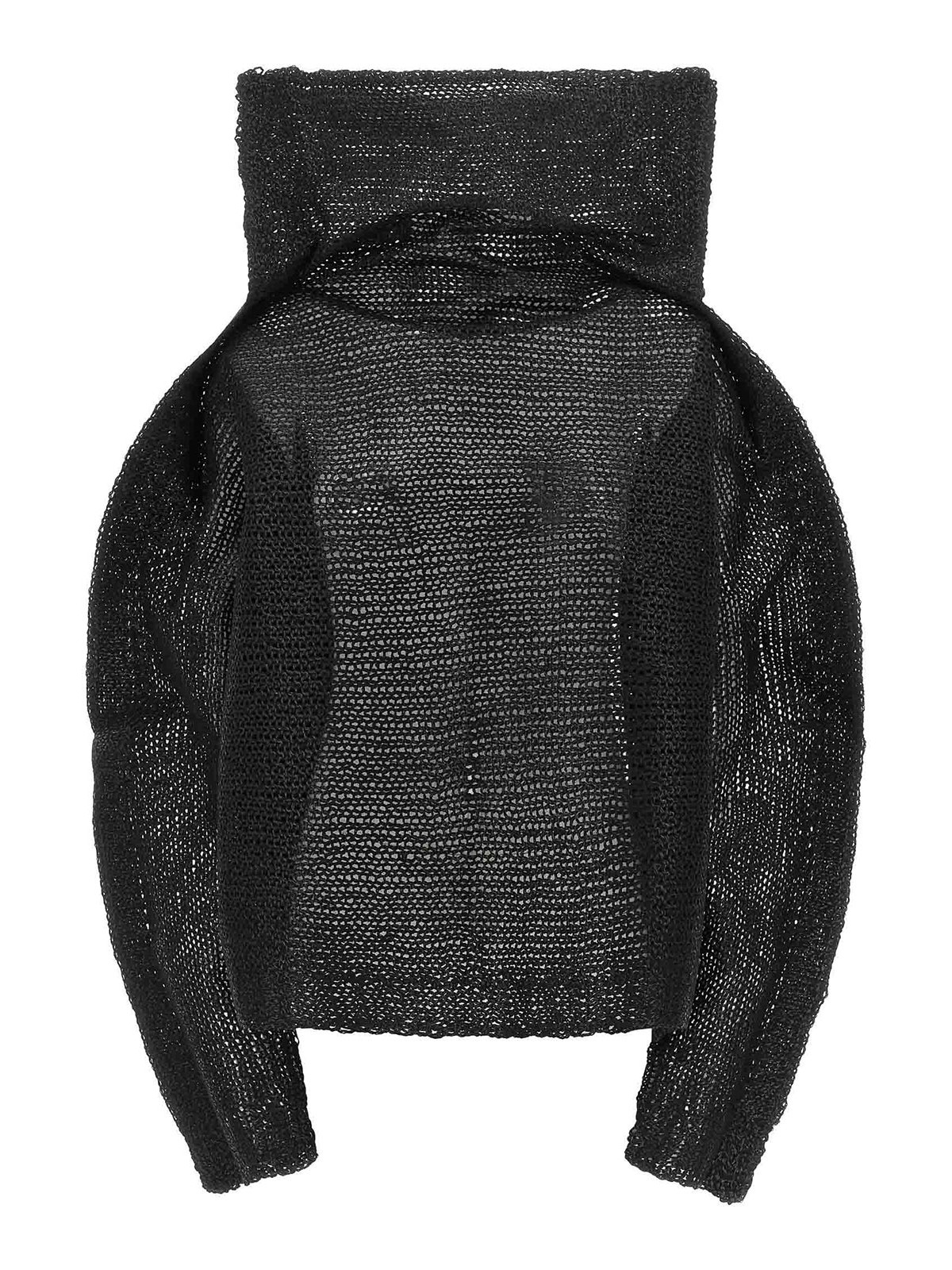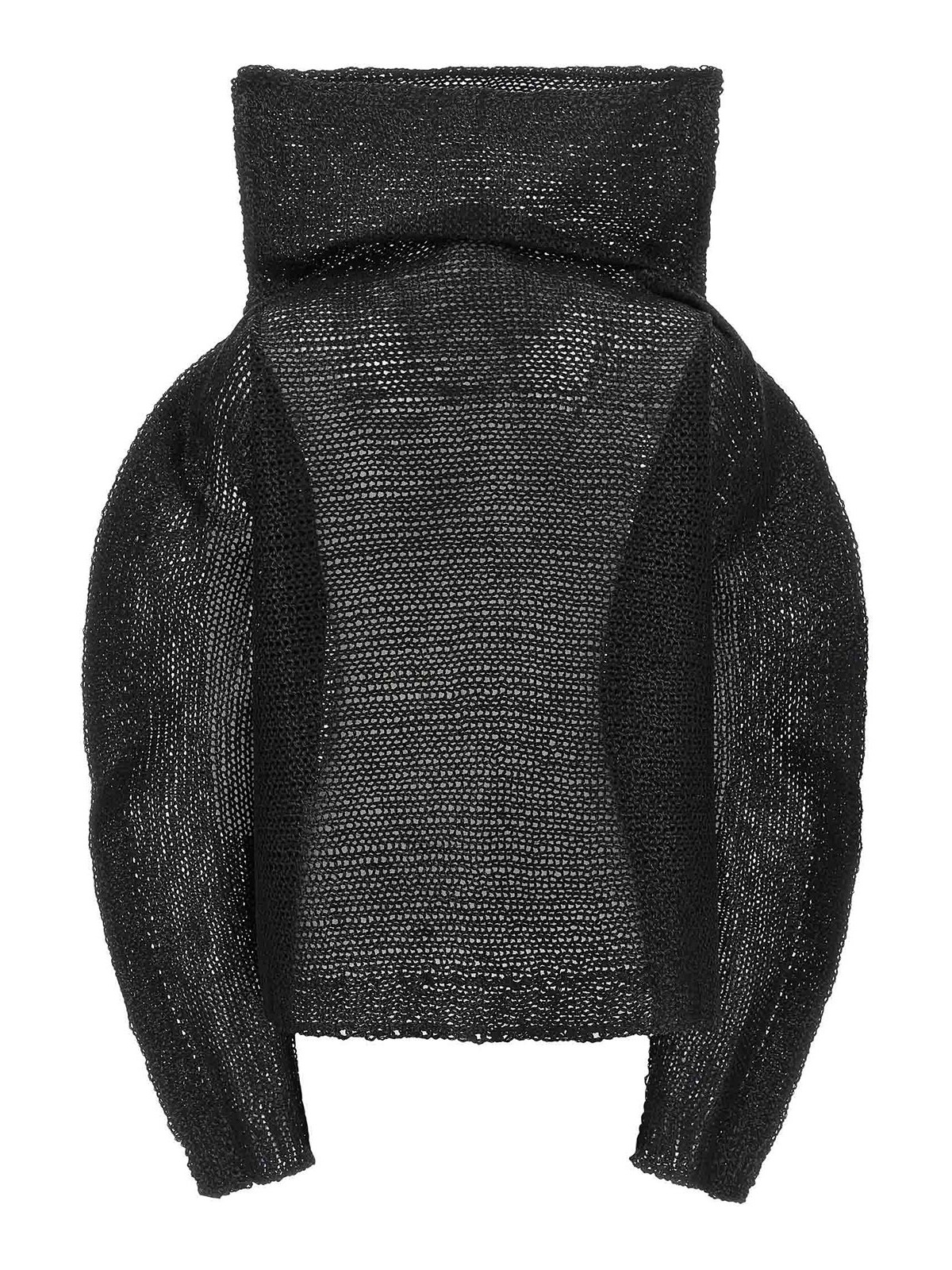panini' wool and alpaca yarn blend top with thermoplastic synthetic fibers, exaggerated fake collar, extra long sleeves with slit on the cuffs.
