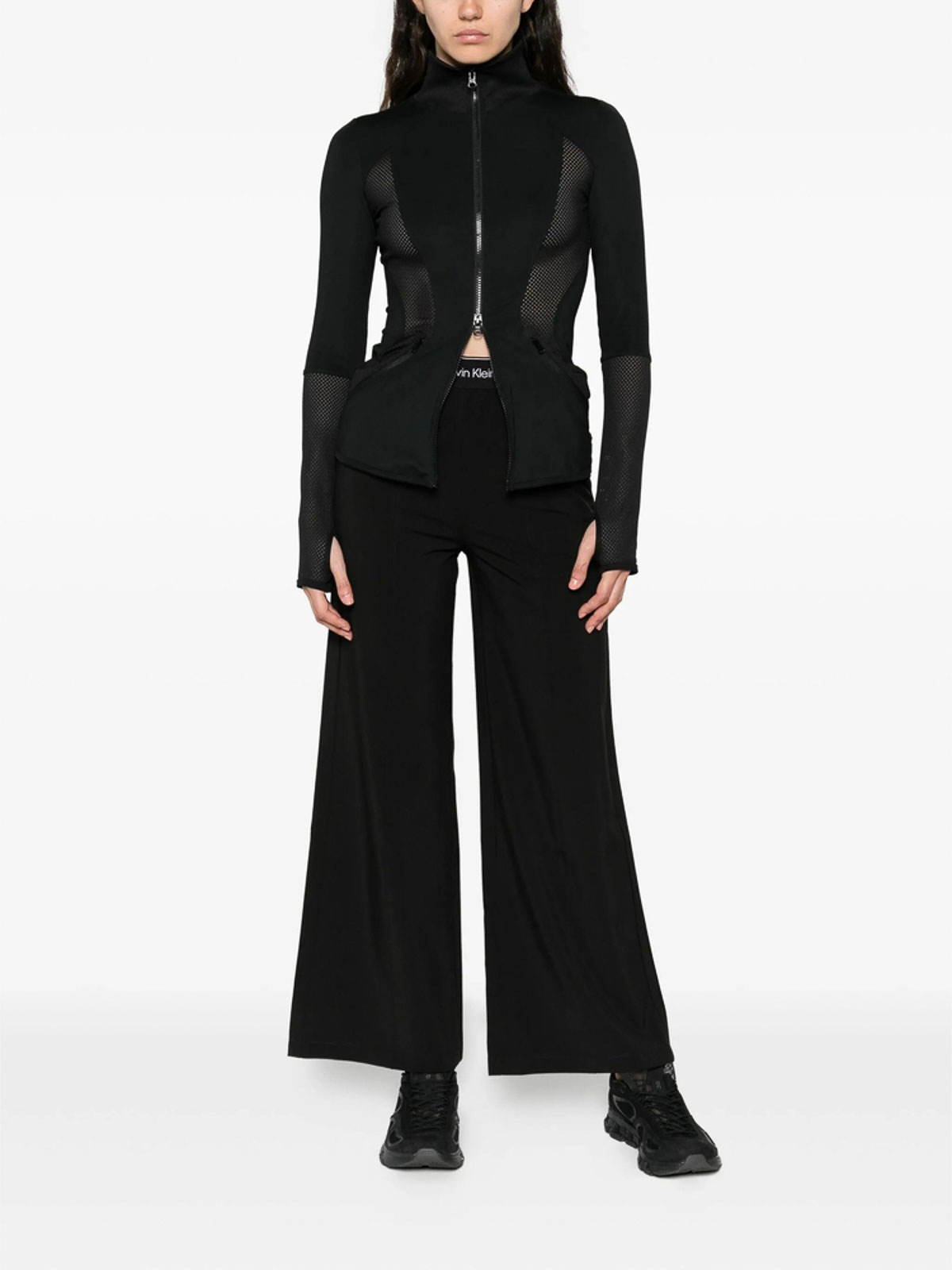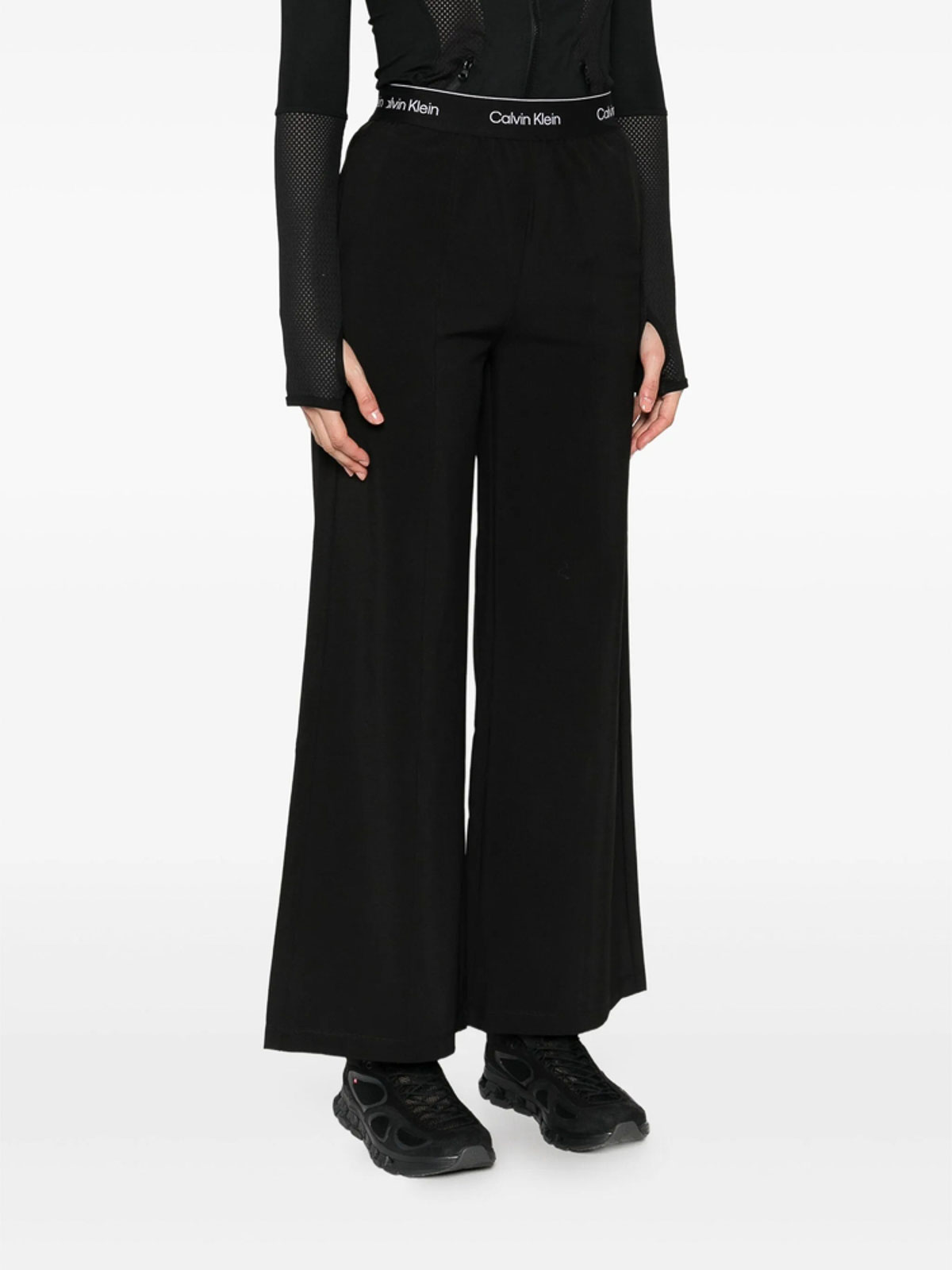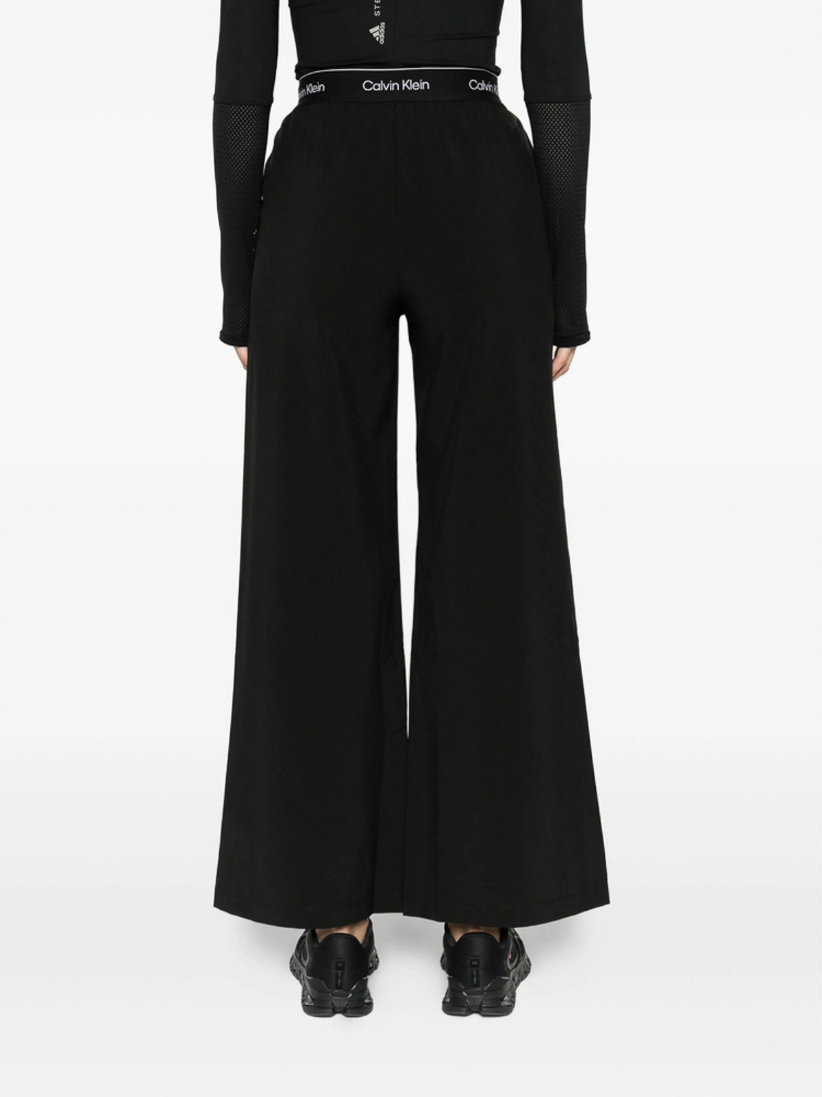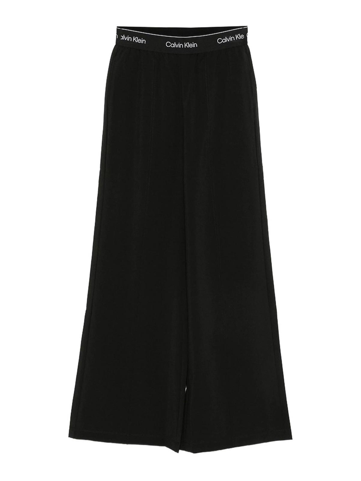 Black logo waistband wide leg seam