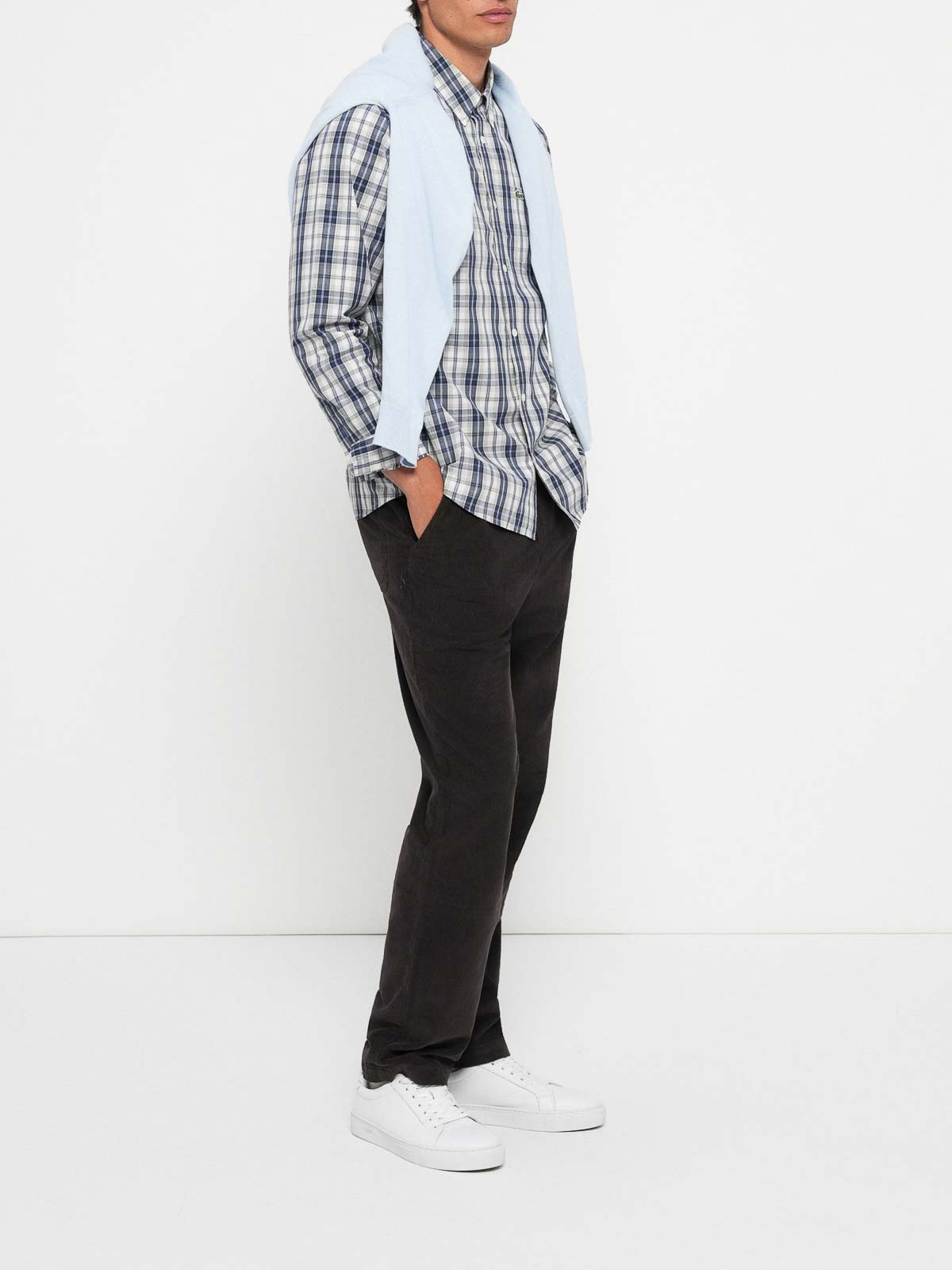 Classically cut lacoste men's poplin shirt, featuring an elegant plaid pattern that brings a touch of refined style to any occasion