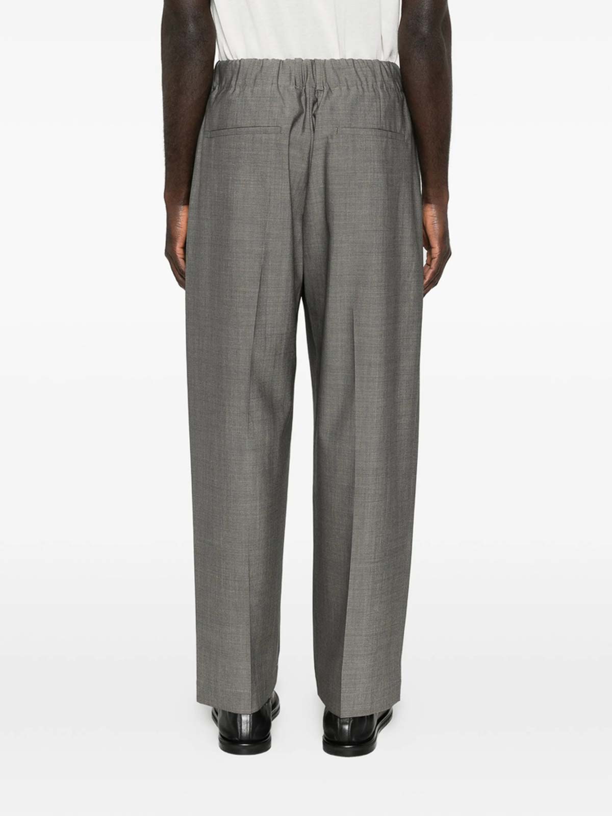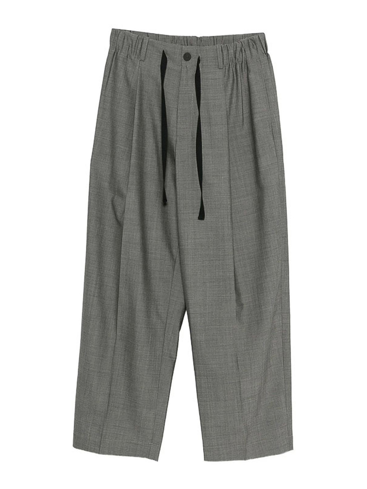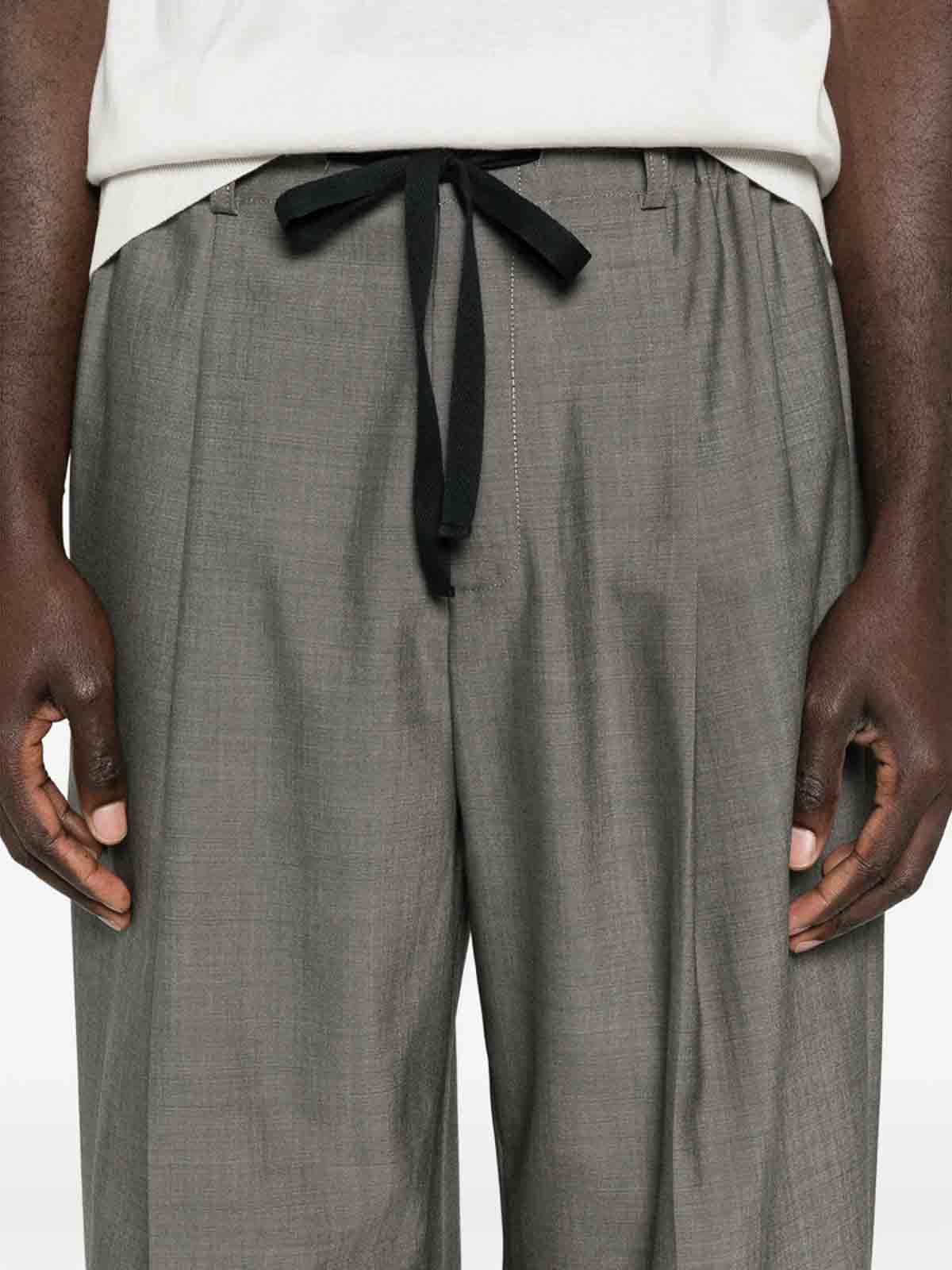 Warm grey cropped drawstring fastening pleat detail elasticated waistband back welt pocket