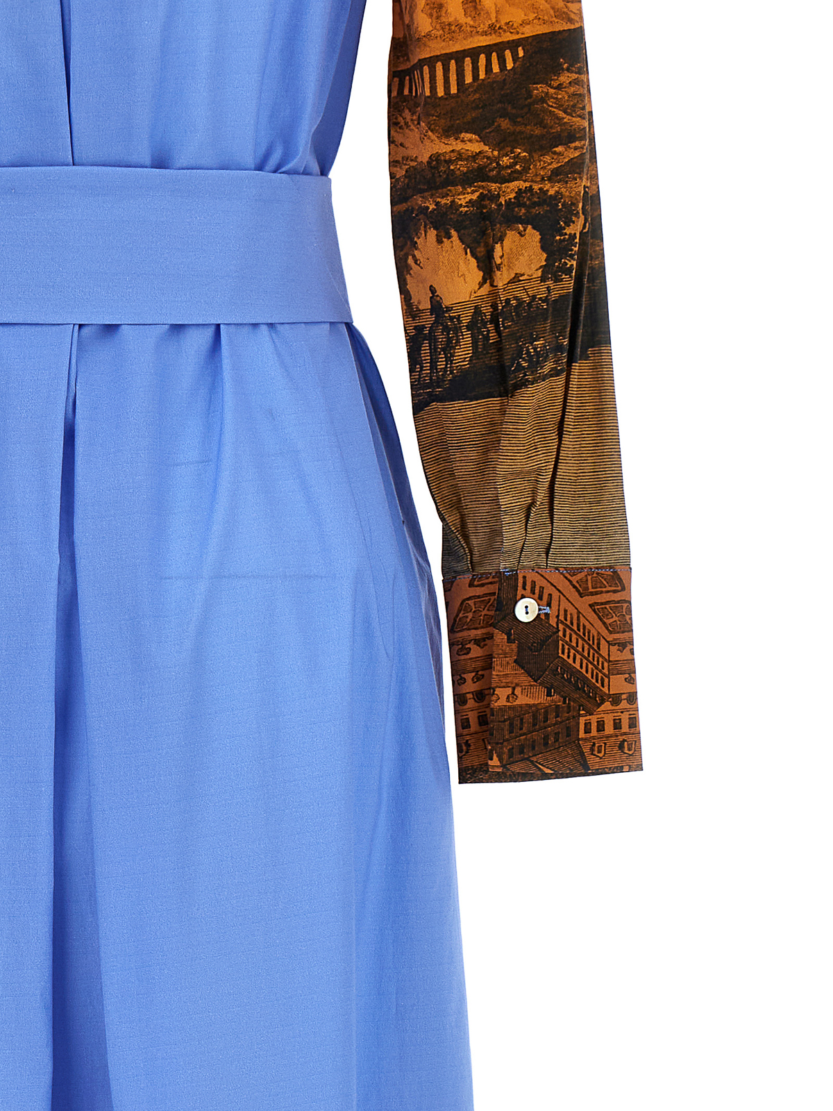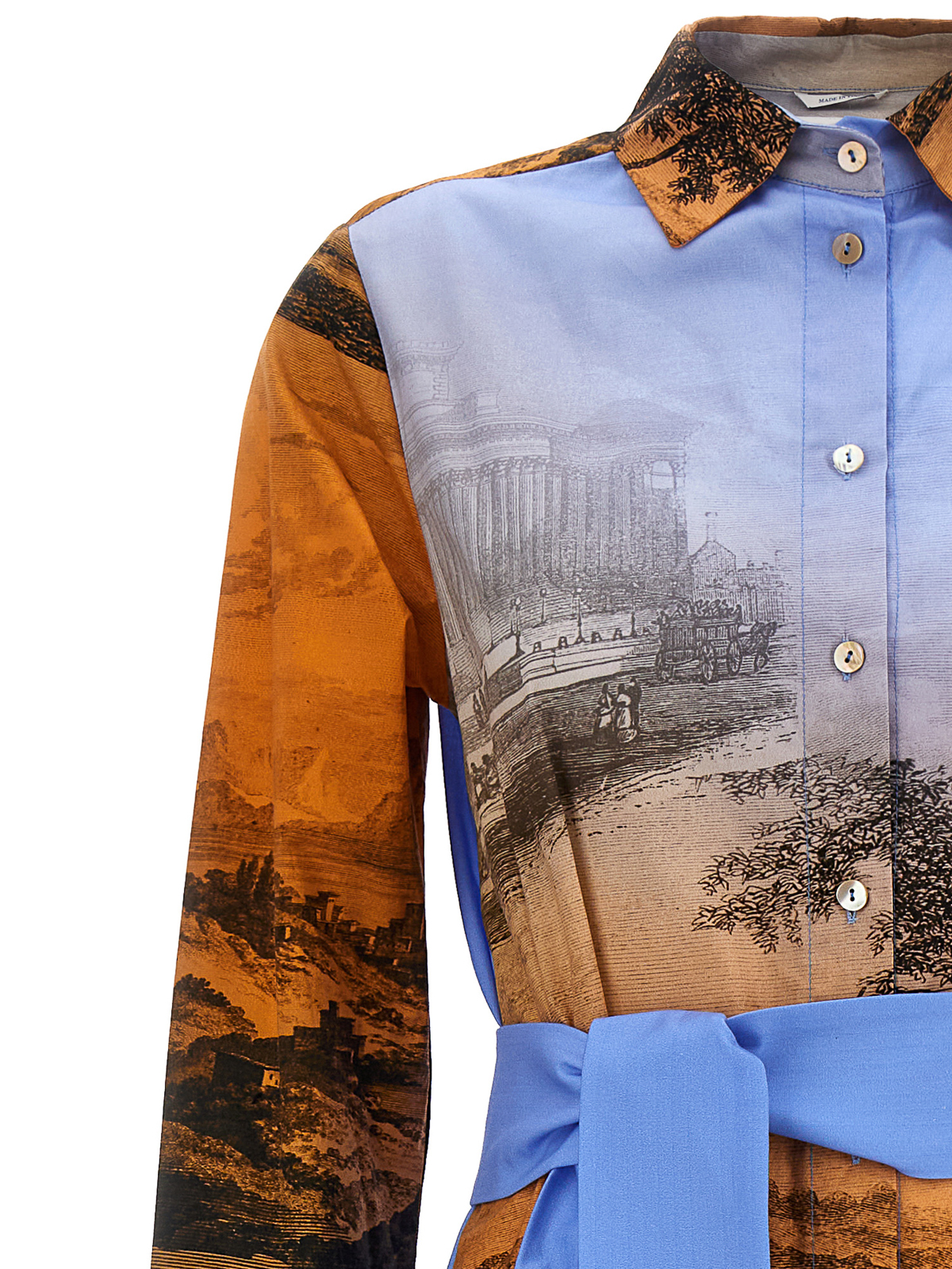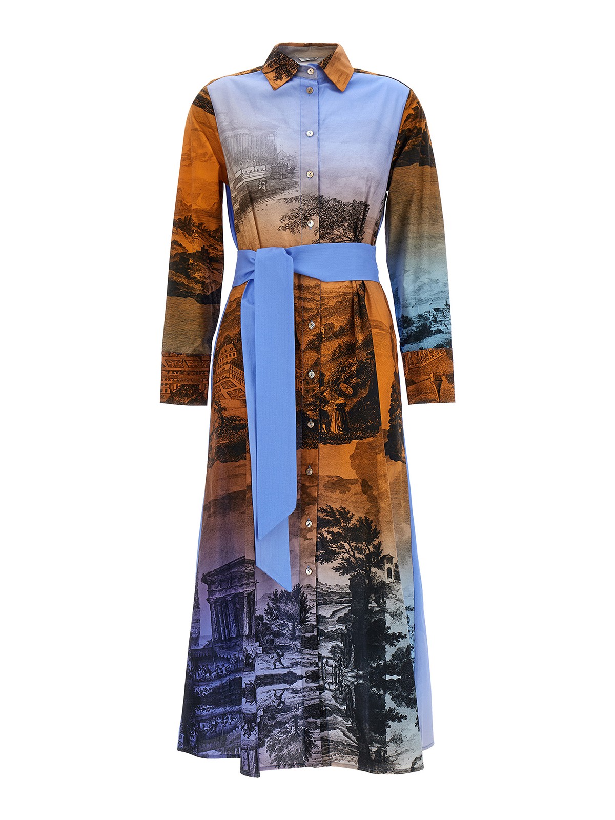 Peonia cotton shirt dress with all over print, button closure, shirt collar, long cuffed sleeves and a belt to be tie at the waist. this product is made with handmade prints, possible variations between one article and another are to be considered characteristics and special features of the product.