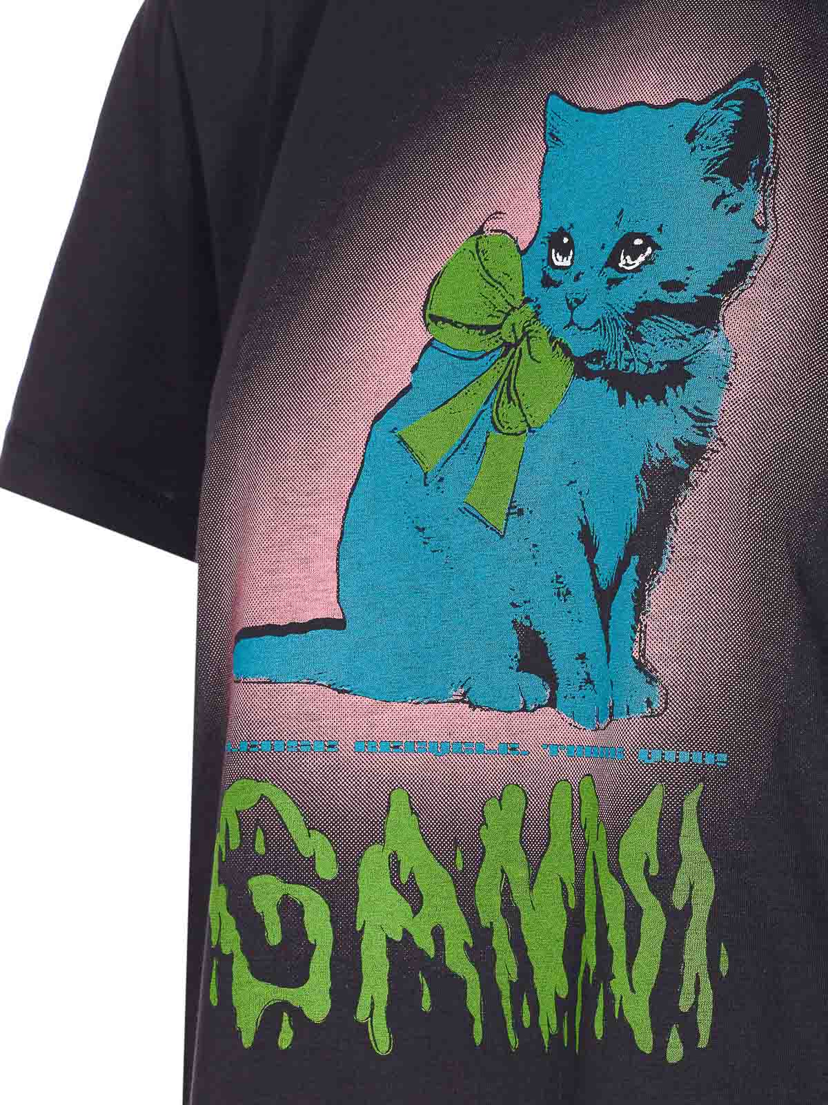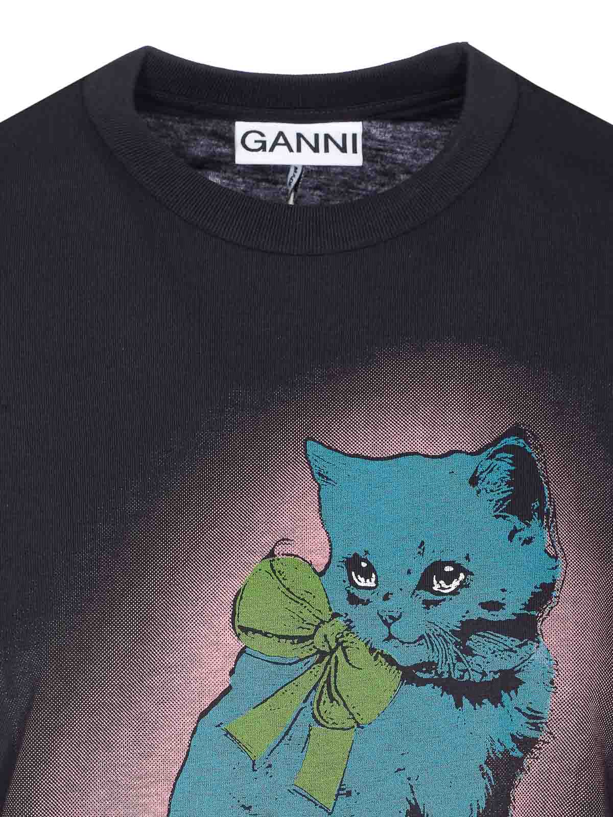 Ganni phantom t-shirt crewneck cat print and print logo