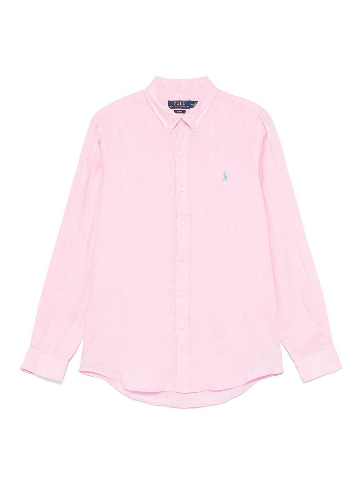 Pink shirt from polo ralph lauren featuring button placket buttoned cuffs box, pleat signature polo pony motif