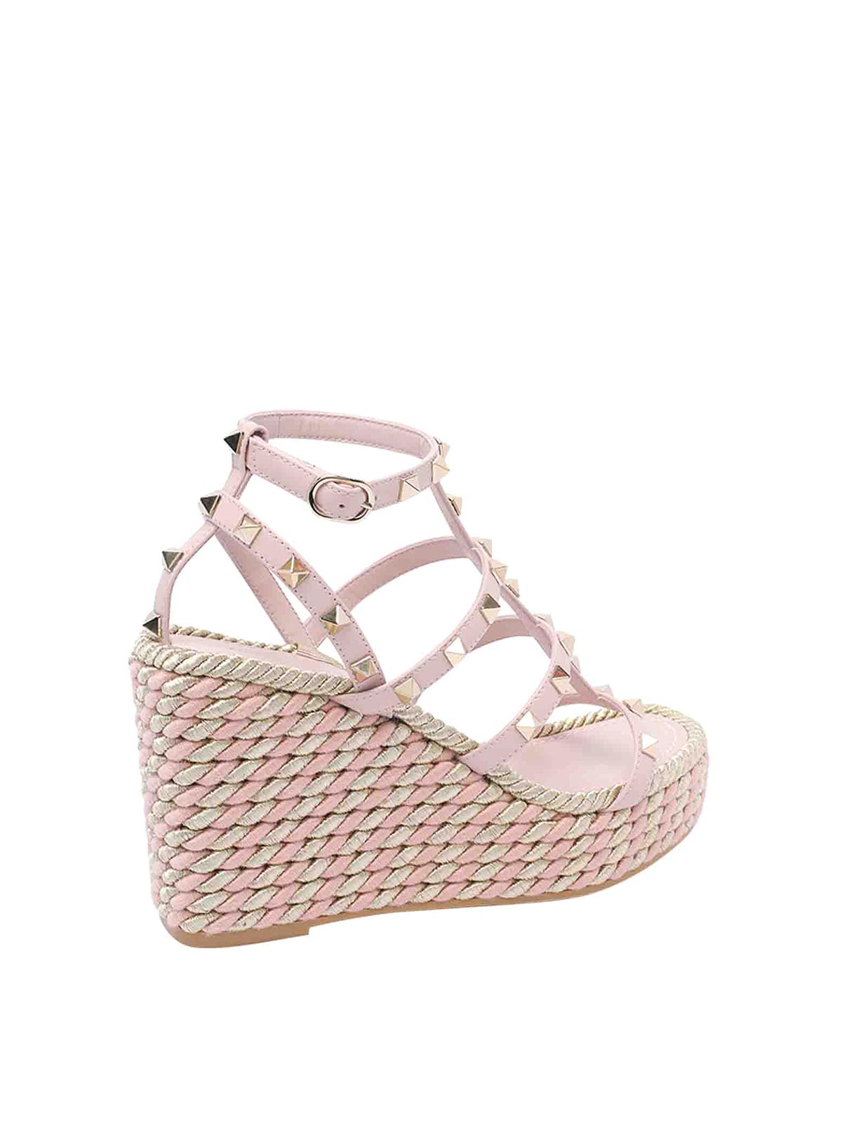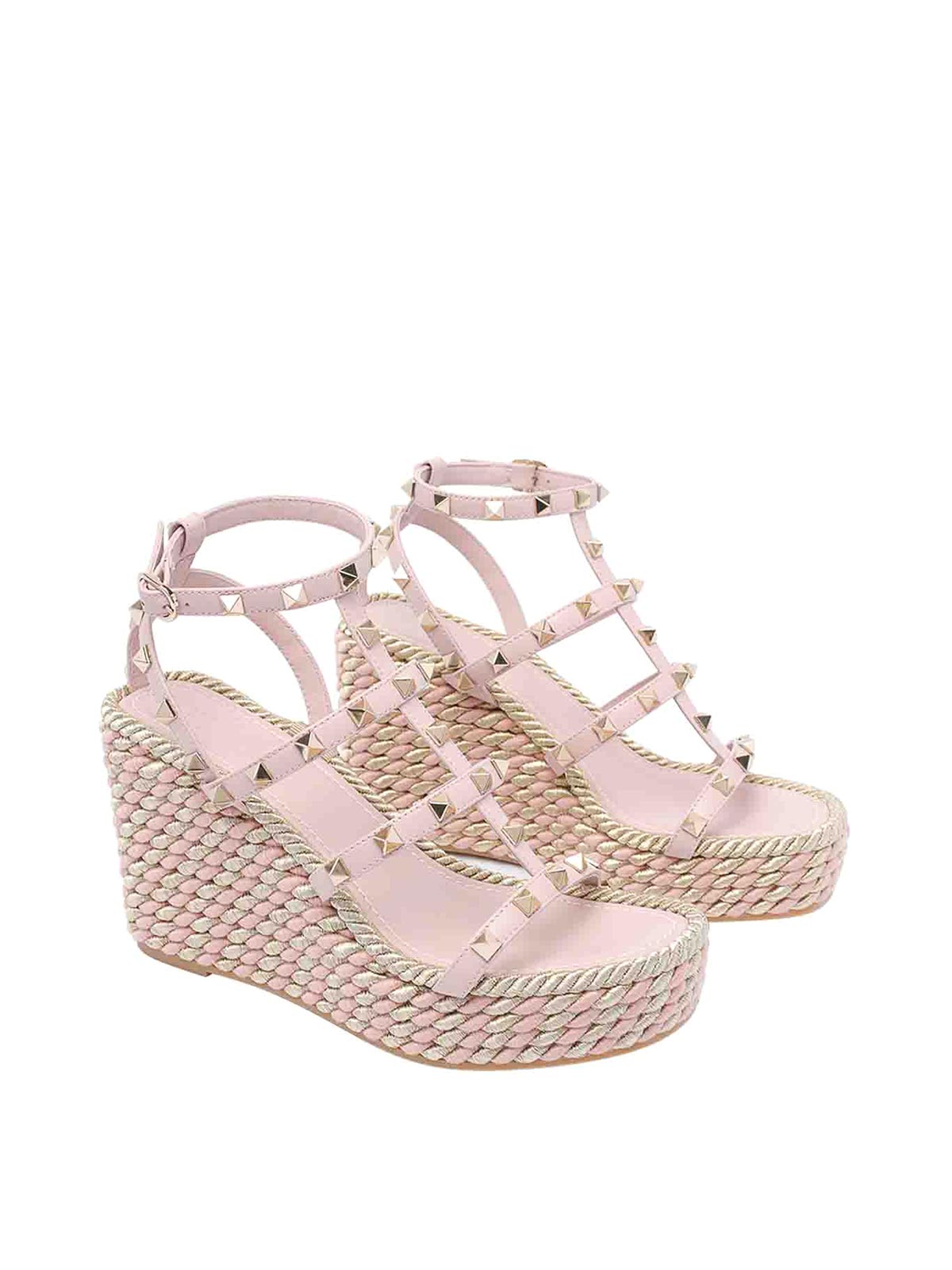 VALENTINO GARAVANI: sandals - Pink Rockstud Wedged Sandals