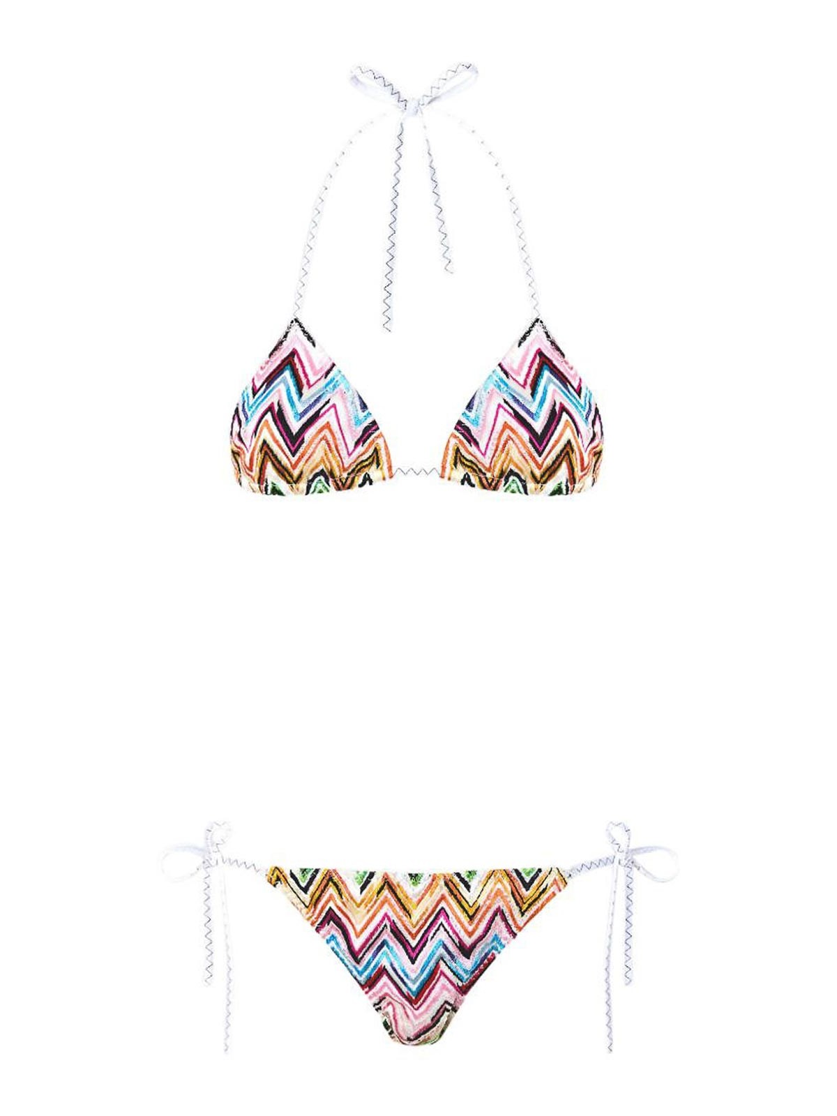 Pink/multicolor zigzag-pattern bikini by missoni, made in italy with iconic artisanal craftsmanship. featuring a zigzag motif and tie fastening, each piece may slightly differ from the image, highlighting missonis unique handmade process. swimwear should be tried on over your own underwear.