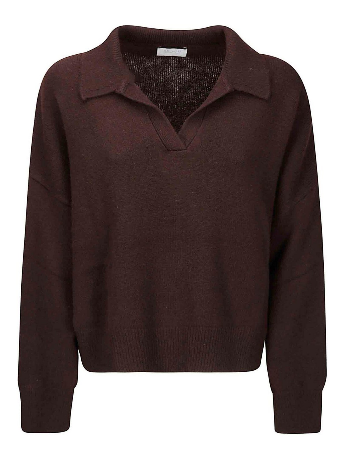 Polo sweater in soft cashmere, collar and v-neck, short and comfortable fit.