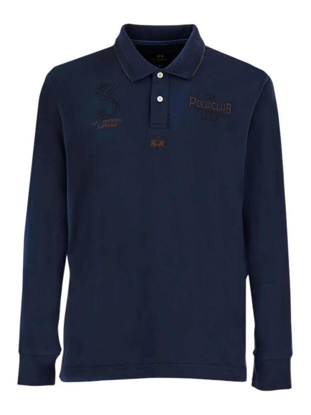 The martina stretch piqu polo branden long-sleeved men's polo made of solid color stretch piqu that combines comfort and sporty style with iconic details the ribbed collar and cuffs feature elegant contrasting stripes while the undercollar with fabric lunette adds a refined touch the patch with number and the embroidered writings on the chest recall the world of polo enhancing the identity of the brand the small logo embroidered under the front opening completes the design with discretion the regular fit ensures comfort and freedom of movement making the garment perfect for everyday sporty elegance plain stretch piqué for comfort and flexibility ribbed collar and cuffs with contrasting stripes patch with number and writing embroidered on the chest embroidered logo under the front opening undercollar with contrasting fabric bezel regular fit for a sporty and refined style