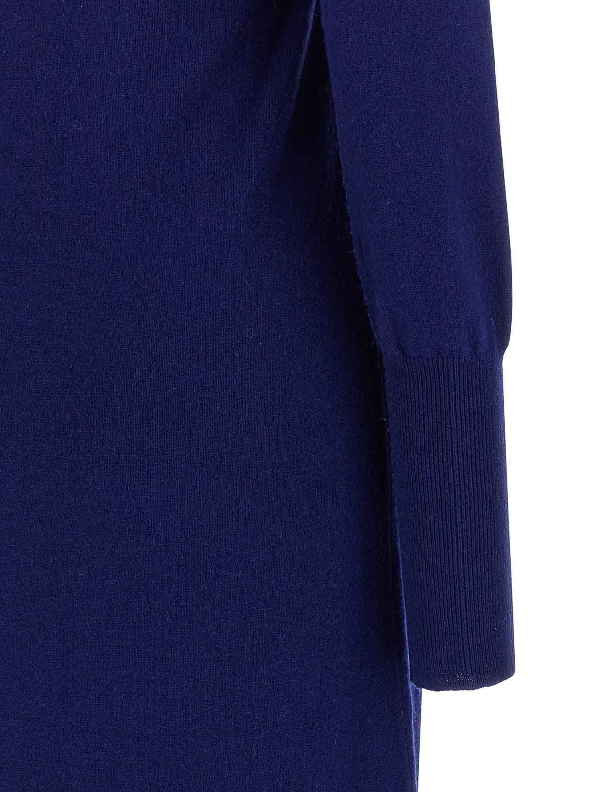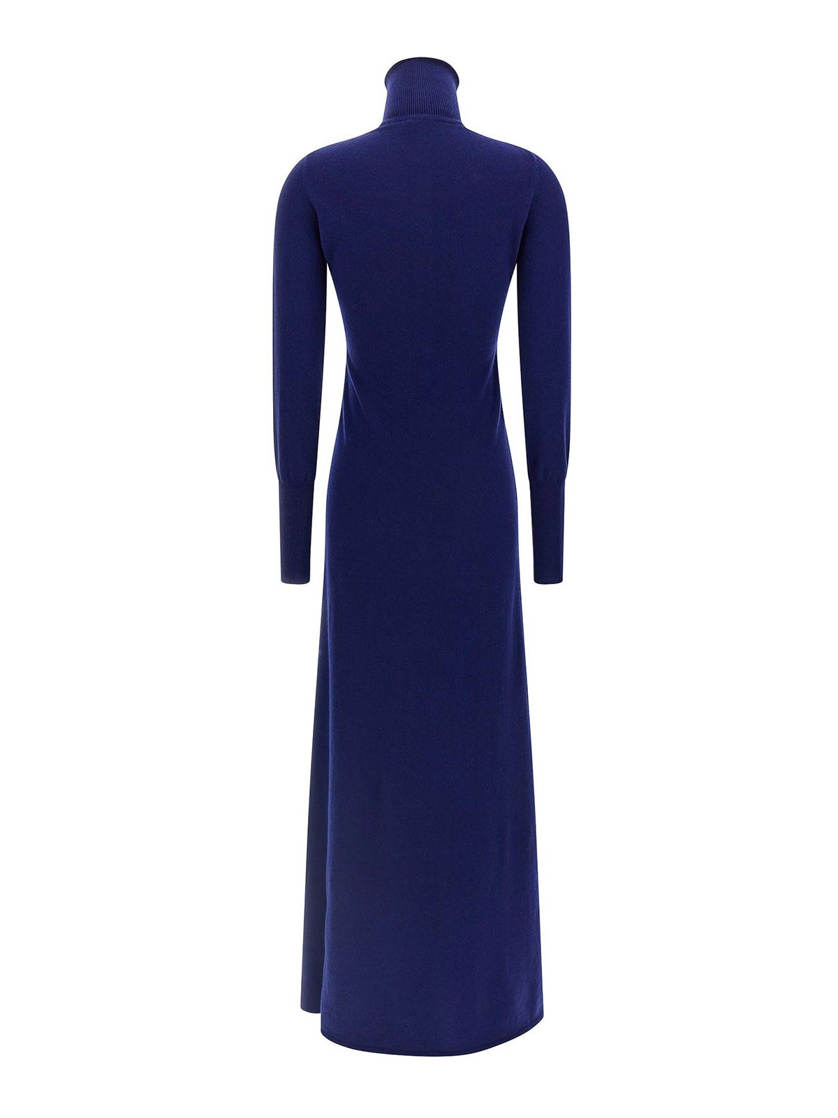 Long cashmere dress with ribbed details, polo shirt with collar and buttons on the front, flared skirt, long cuffed sleeves.