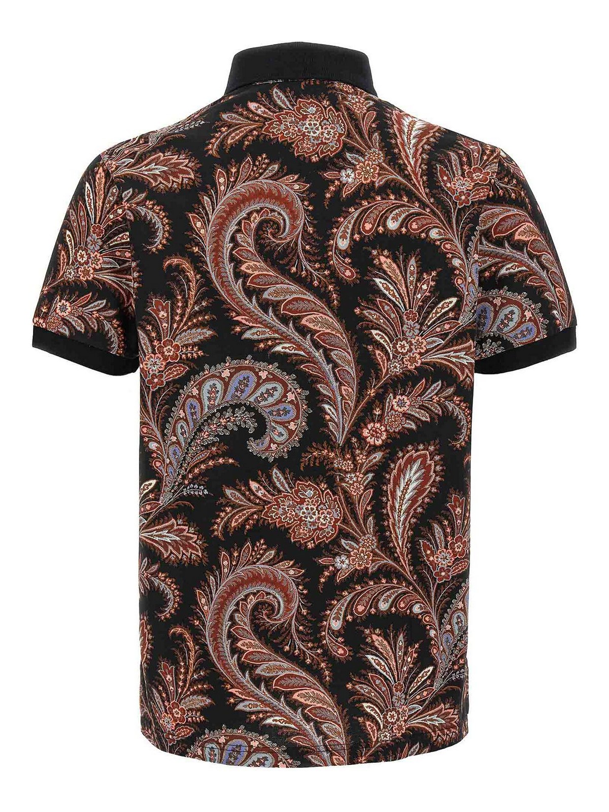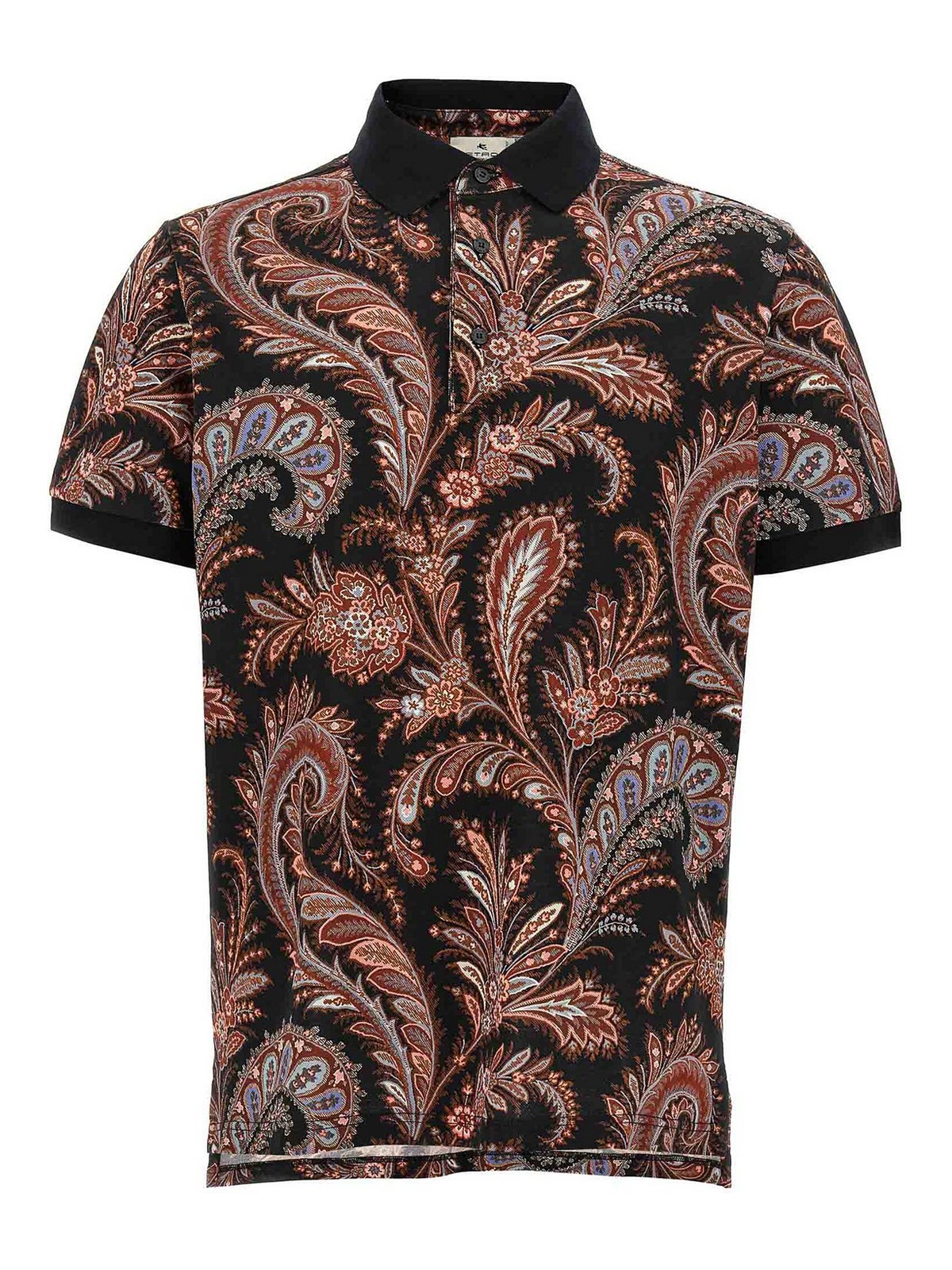 Piqu cotton polo shirt with all-over maxi flower paisley print and solid color details, tone-on-tone logo embroidery on the front, collar and buttons, short sleeves, side splits.