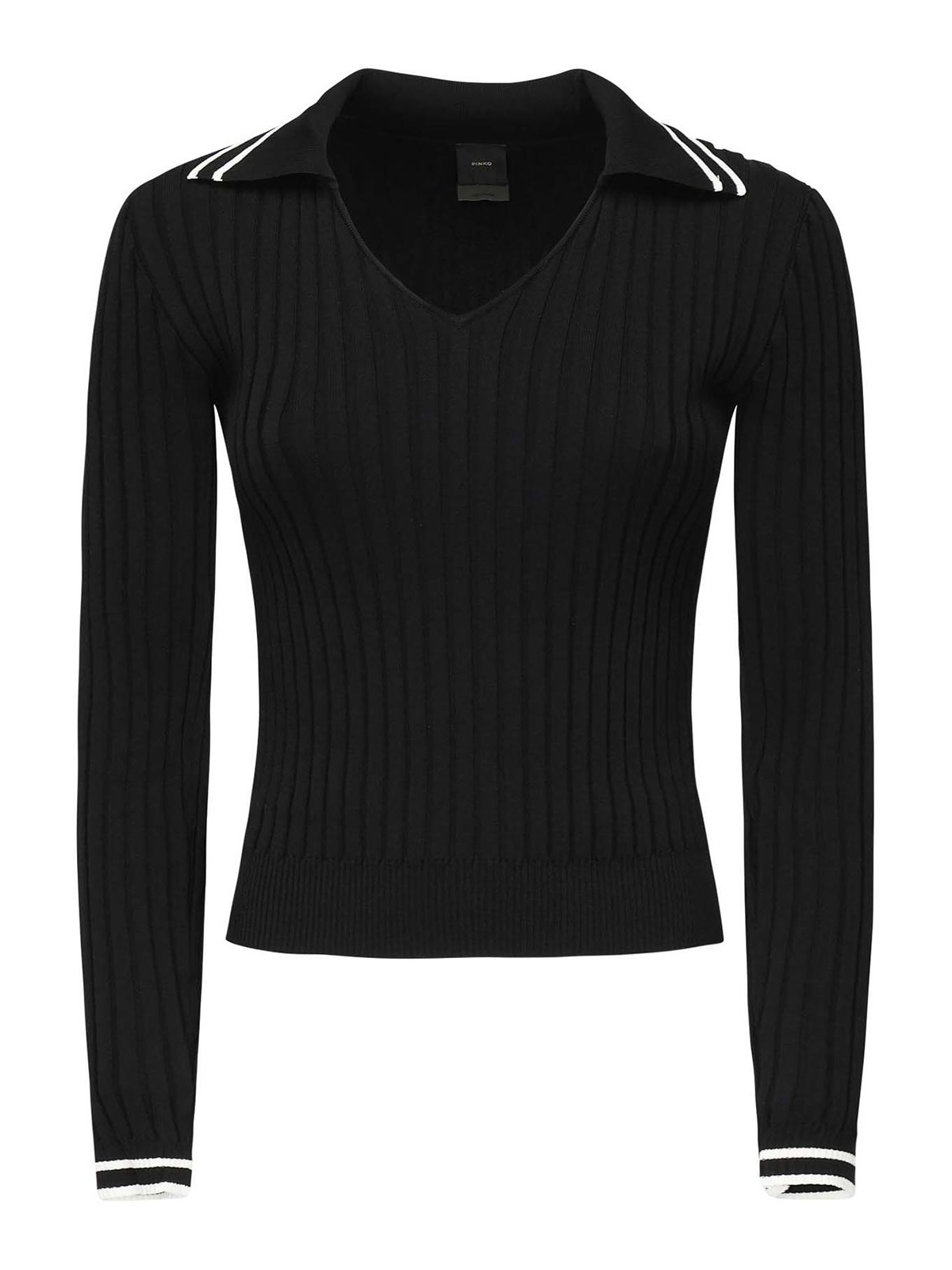 Style collar long sleeves ribbed trim size shown in photo is xs color black