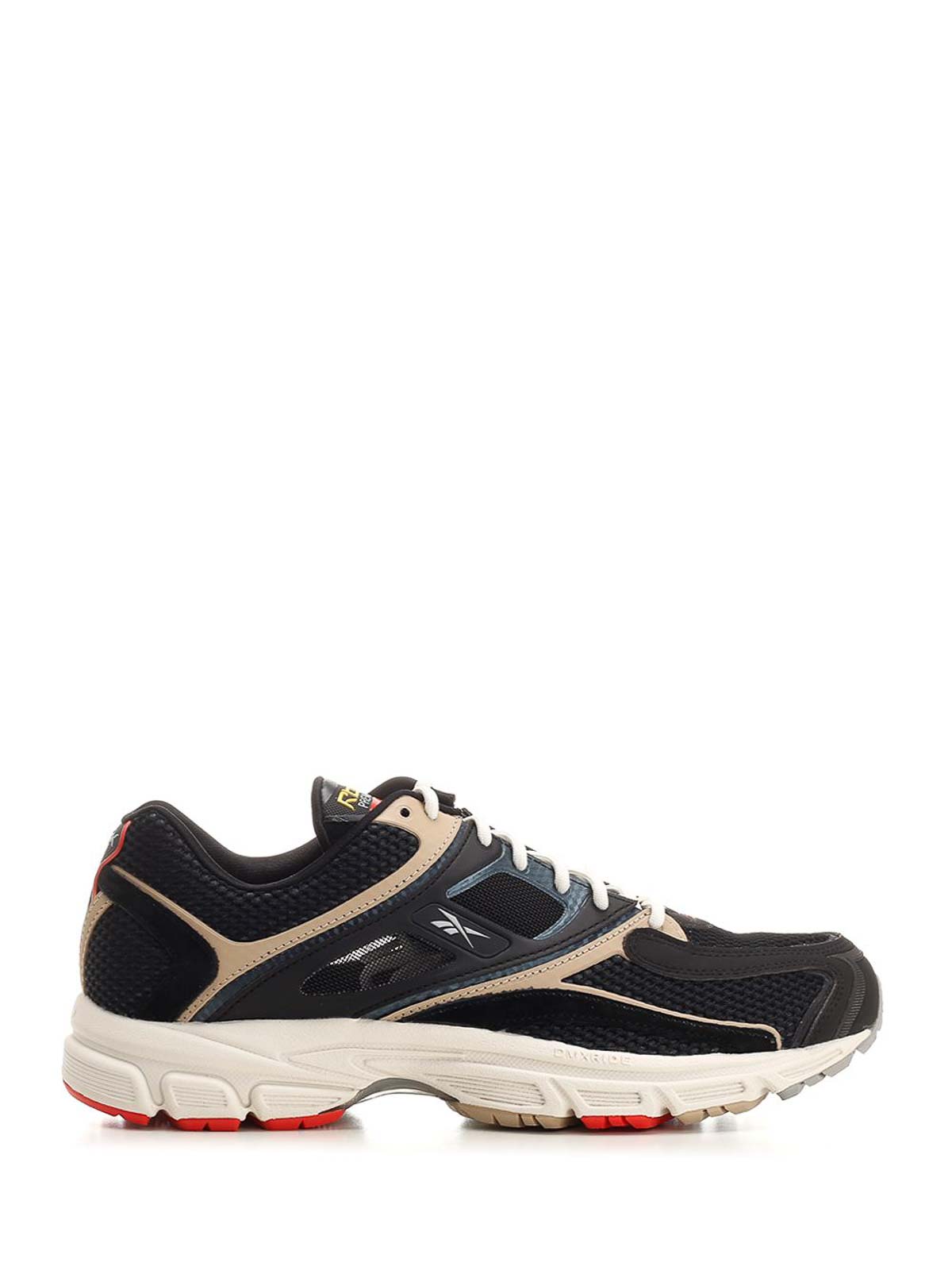 premier road modern sneakers from reebok in a mix of materials in shades of black, white and red, with shaped structure, cut-out design and padded inserts, rubber outer sole and front closure with laces.