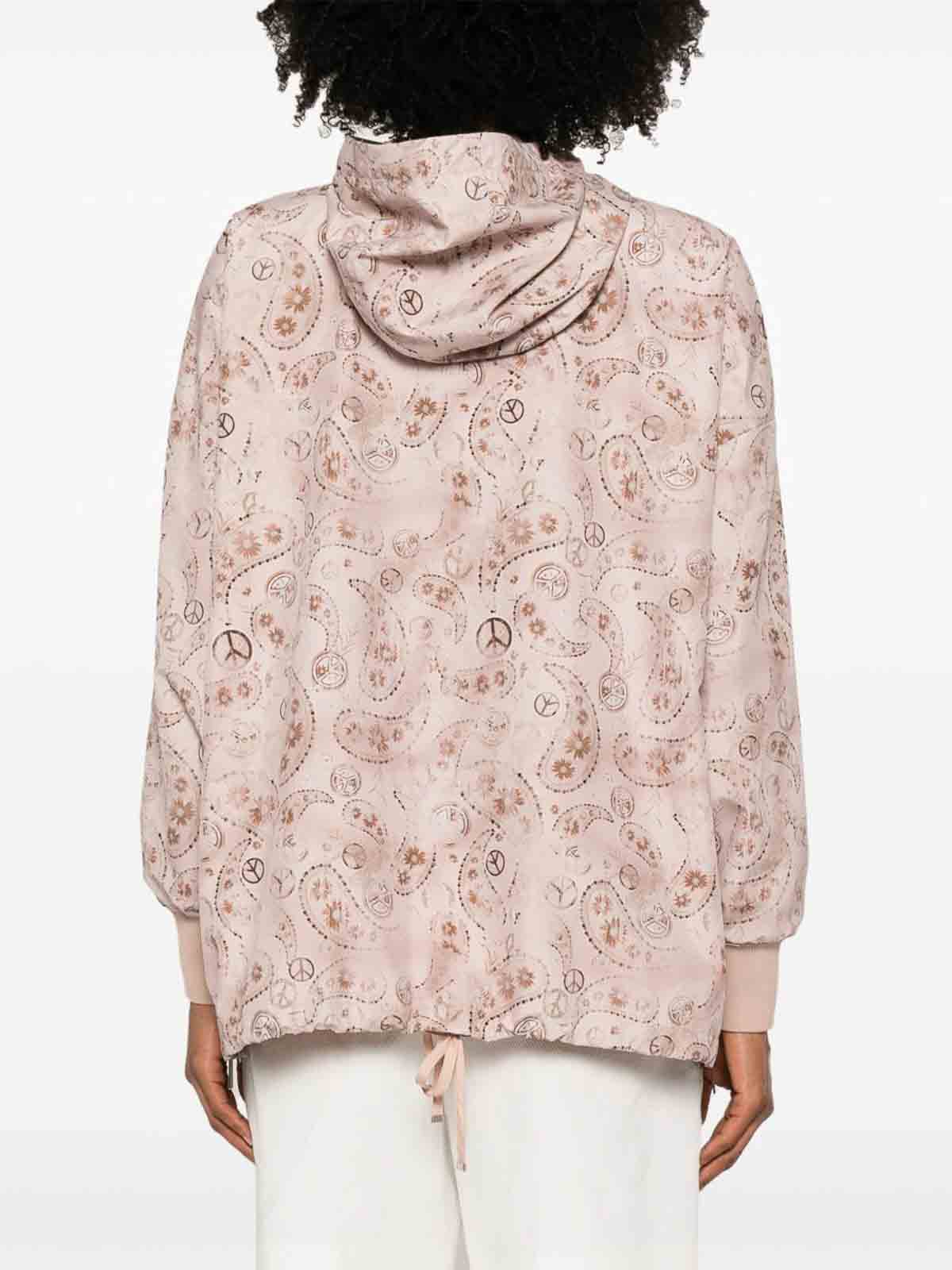 Light pink two-way zip short side zip two side welt pockets drawstring hem