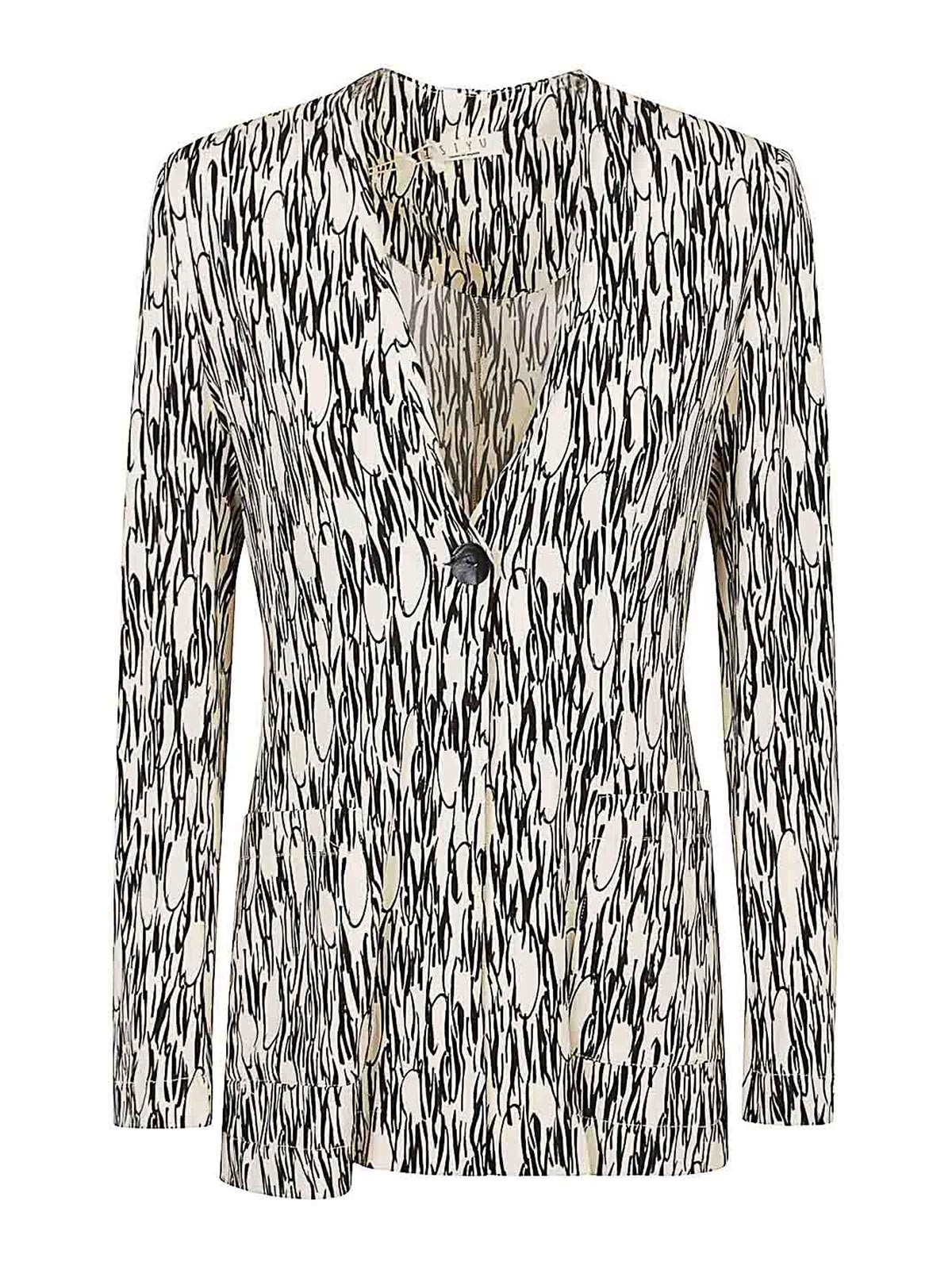 Jacket made of viscose with all-over multicolor print, v-neck, front button closure, two front patch pockets, straight hem.