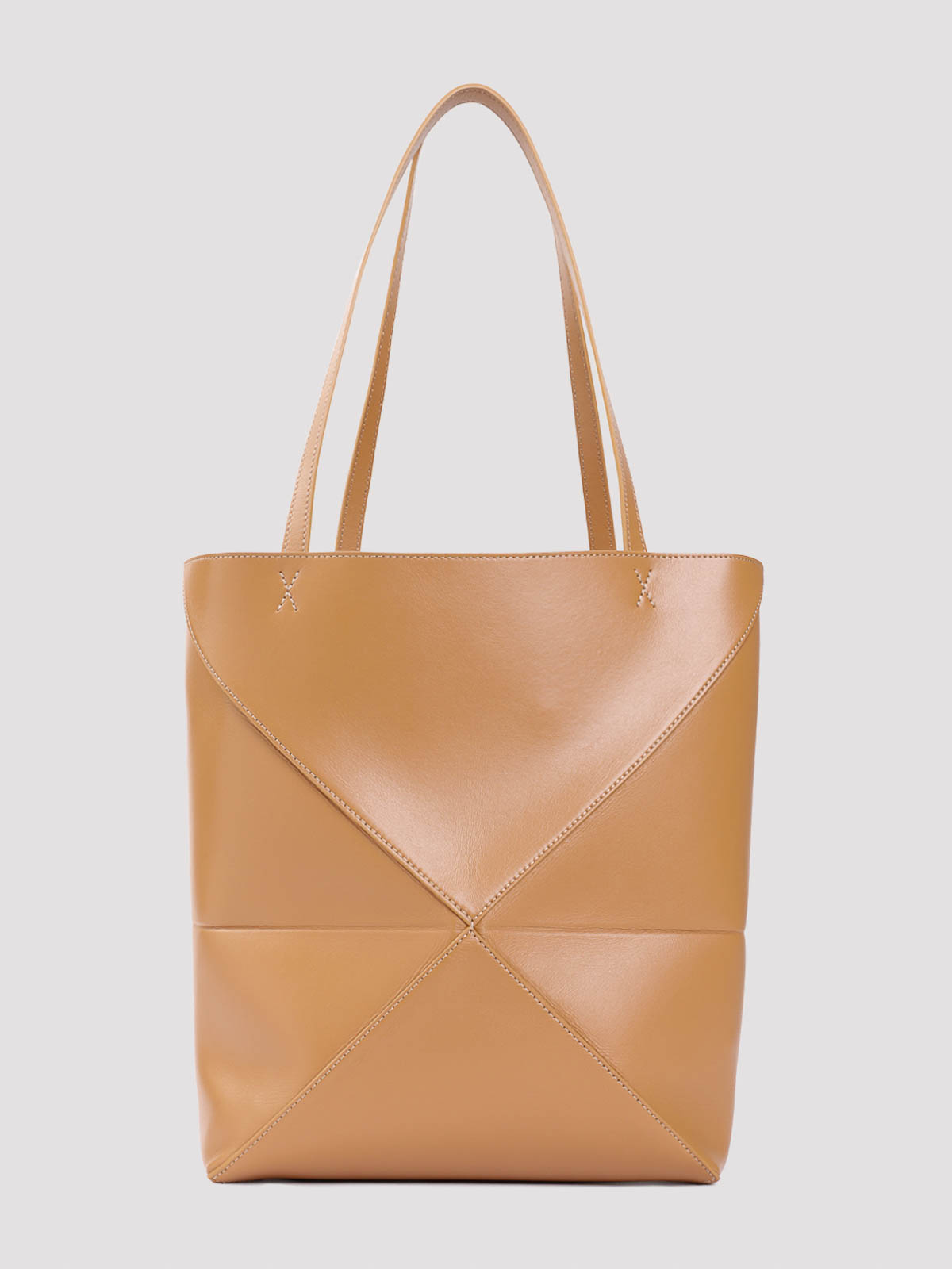Loewe warm desert puzzle fold medium tote warm desert architectural panels that allow the bag to fold completely flat tonal on top embossed logo on