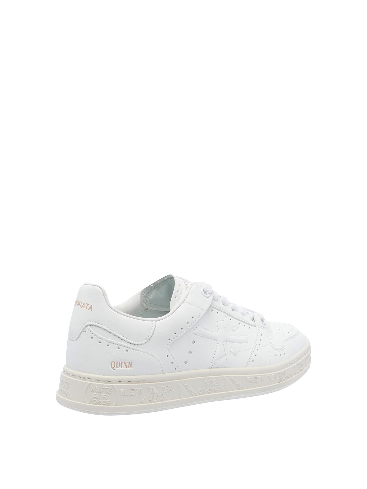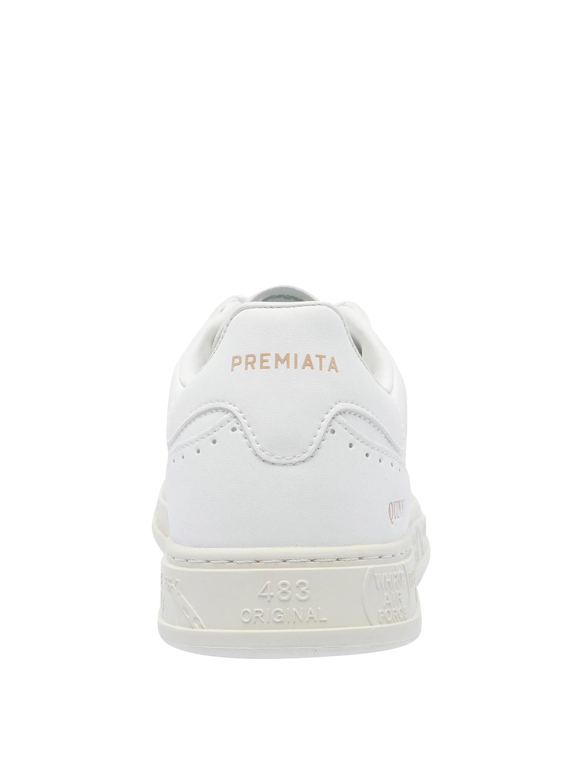 Premiata white quinnd sneakers, laces closure, leather upper, round toe, lateral logo