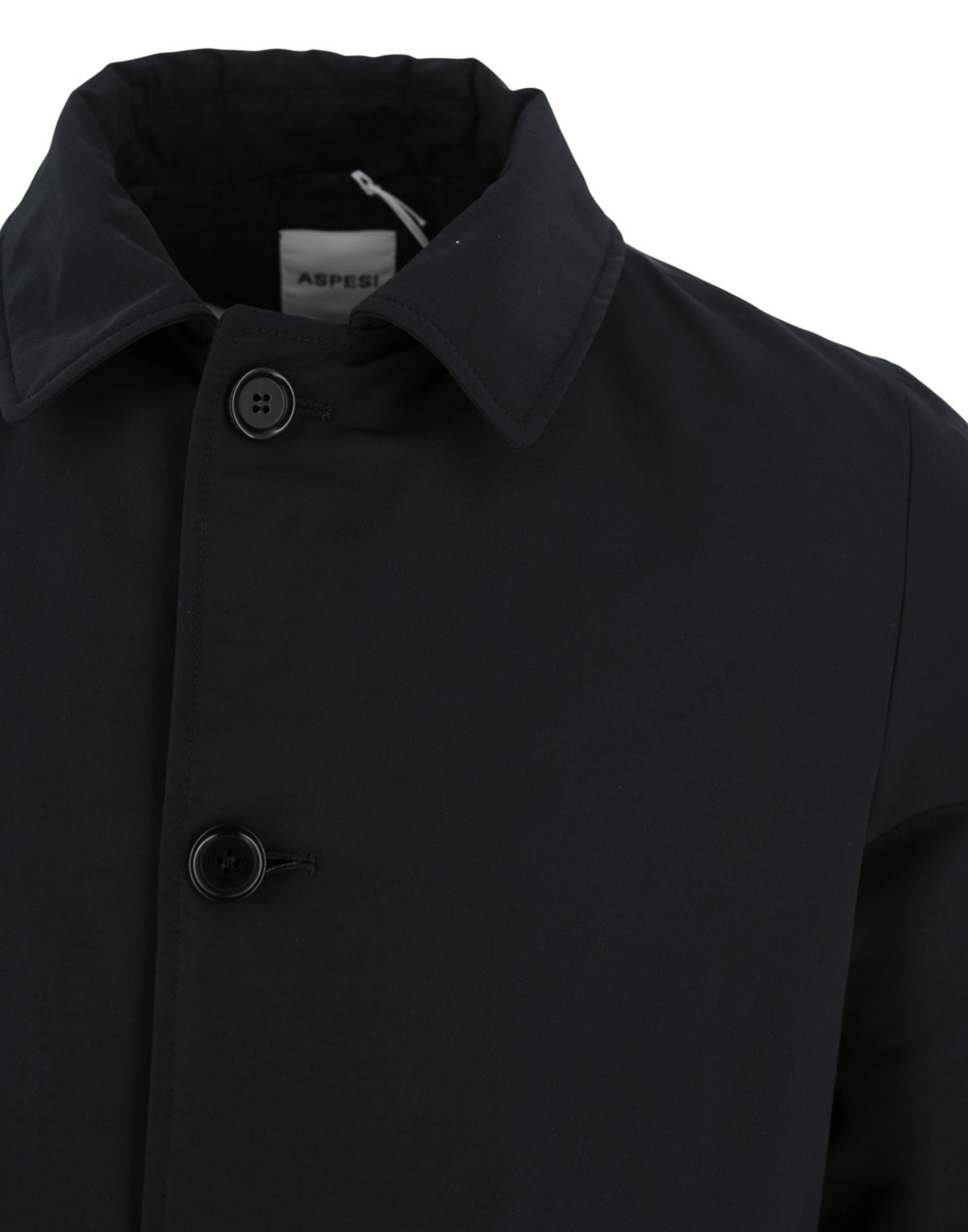 Aspesi vodka raincoat in waterproof blend with a classic character made of resistant blend canvas padded with super compact thermore wadding to guarantee light and effective thermal insulation the quilted interior adds comfort while the front with logoed buttons and the pockets with hidden toggle define a clean and functional aesthetic the regular fit and the essential structure make this garment an icon of the contemporary urban wardrobe super compact thermore blend canvas quilted front with logoed buttons front pockets with hidden toggle regular fit