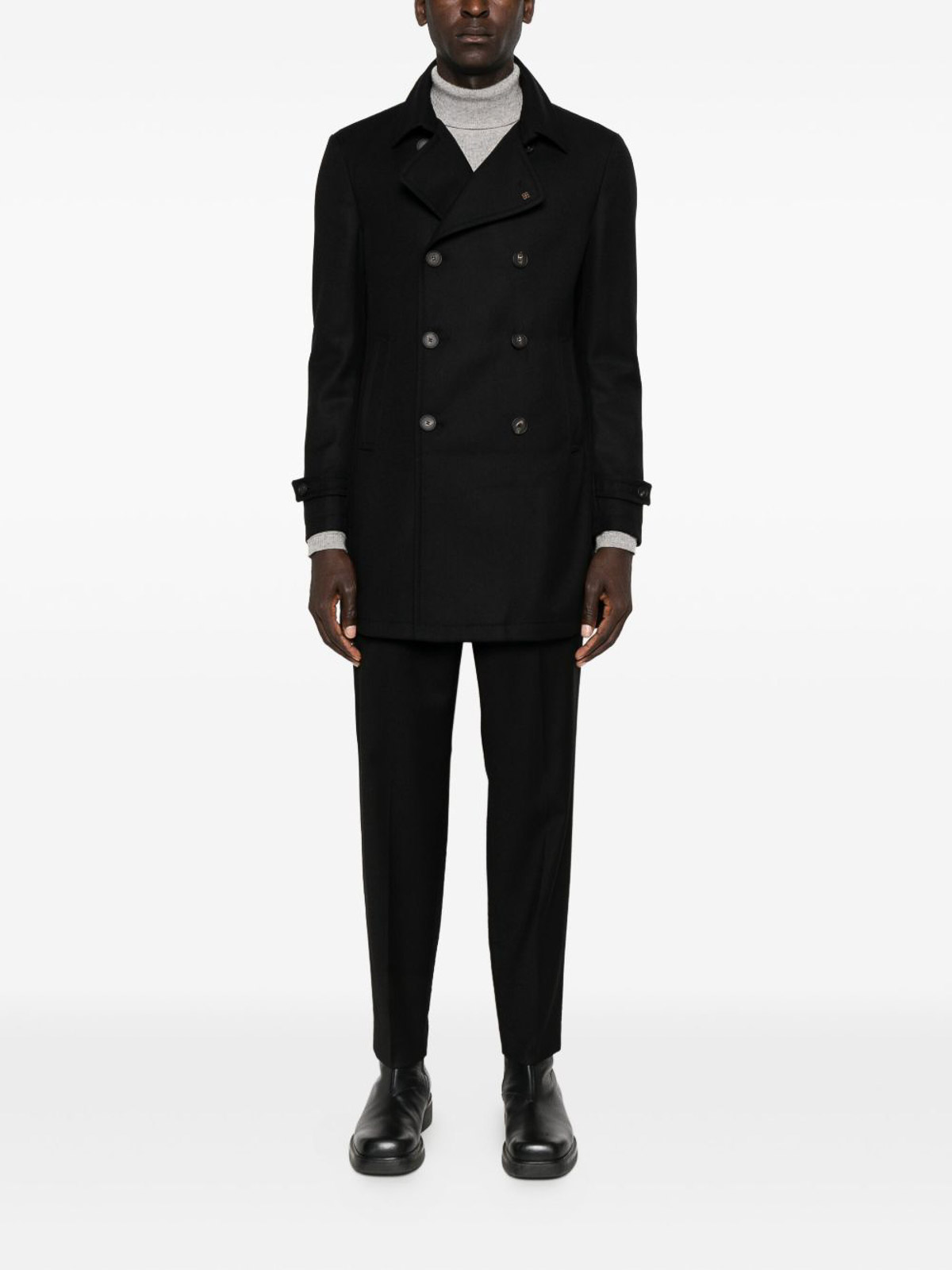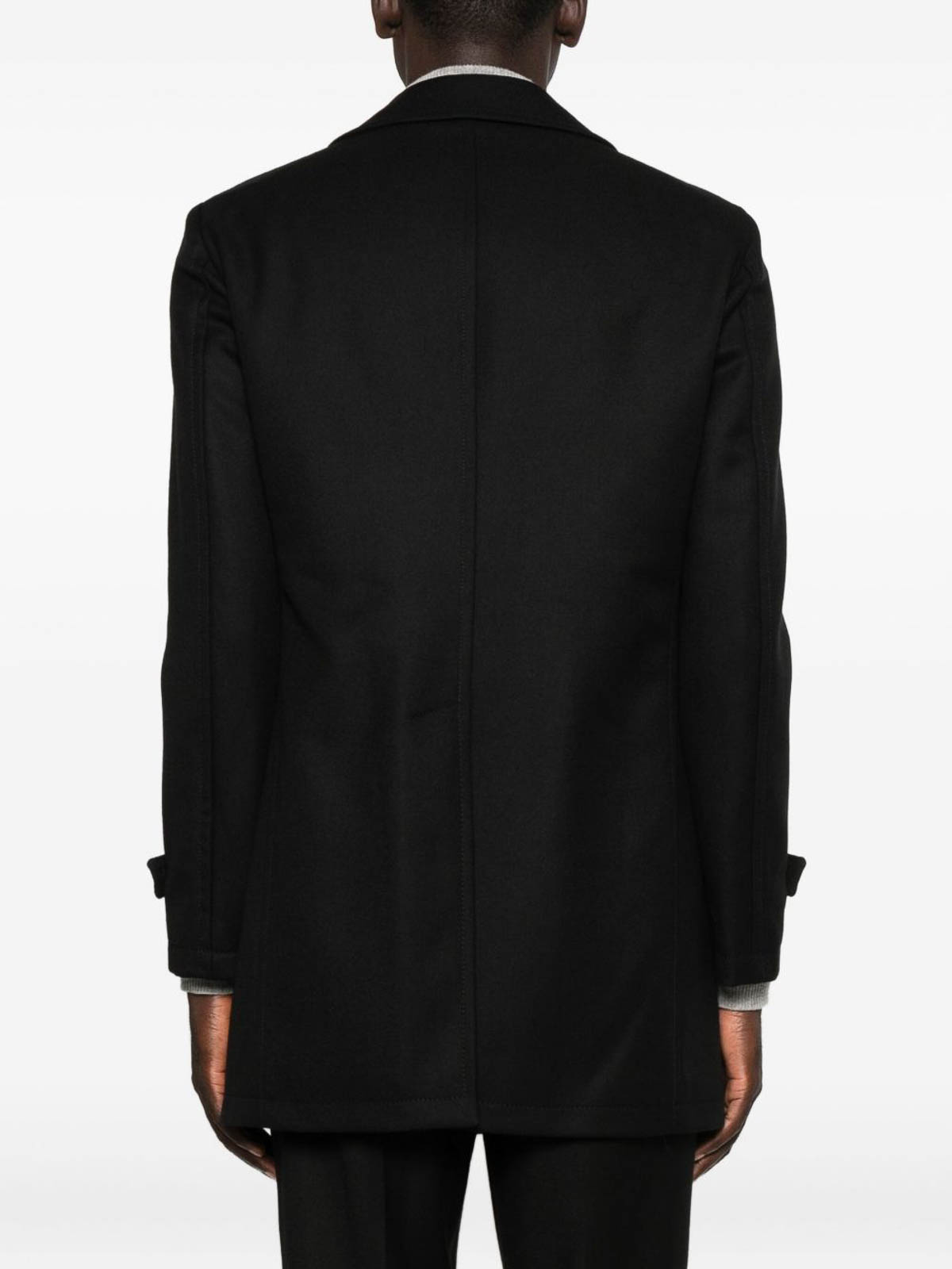 Black double-breasted notched lapel welt pockets buttoned cuffs quilted